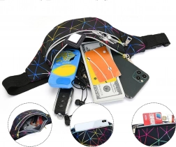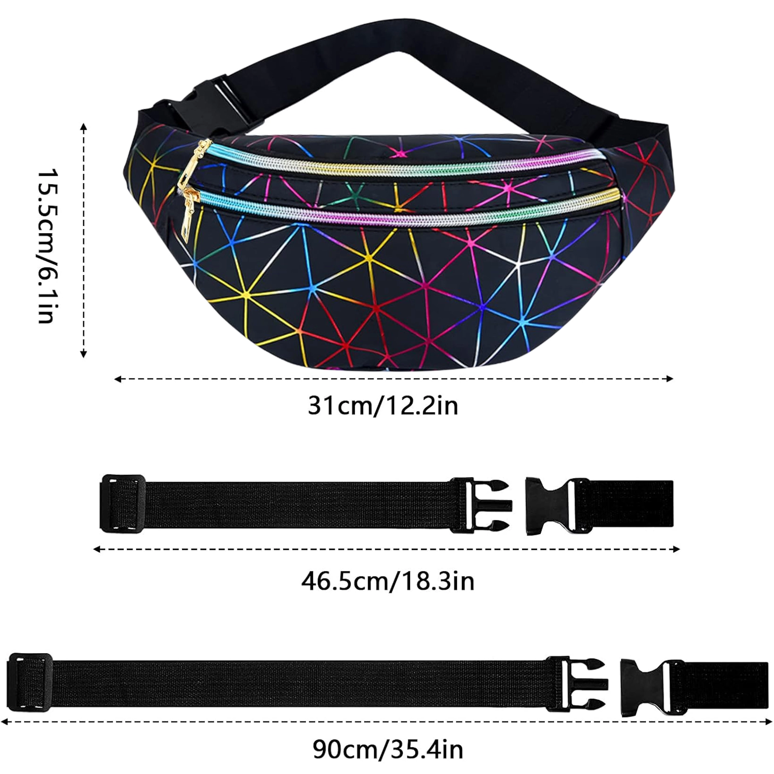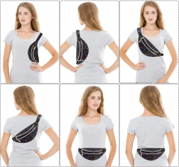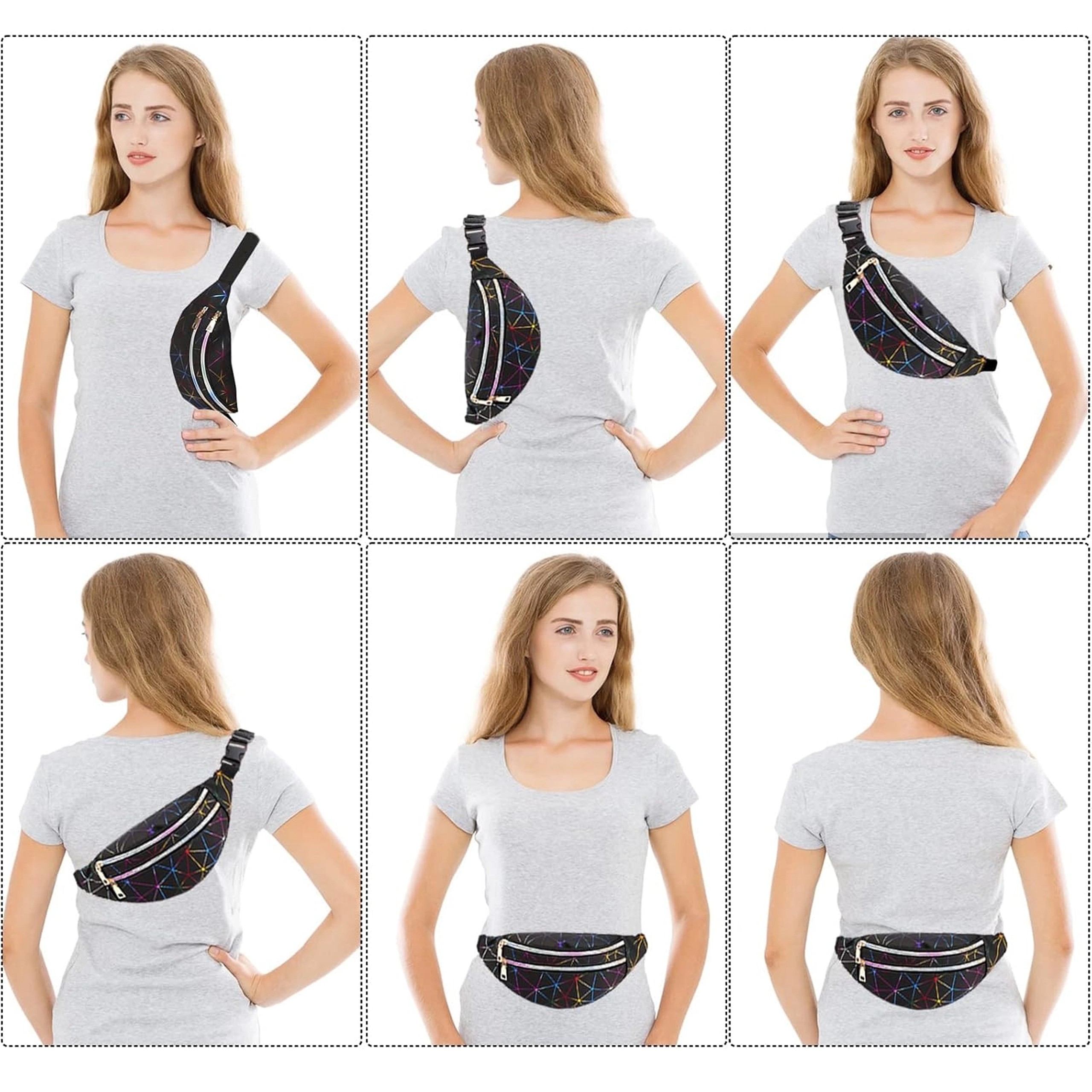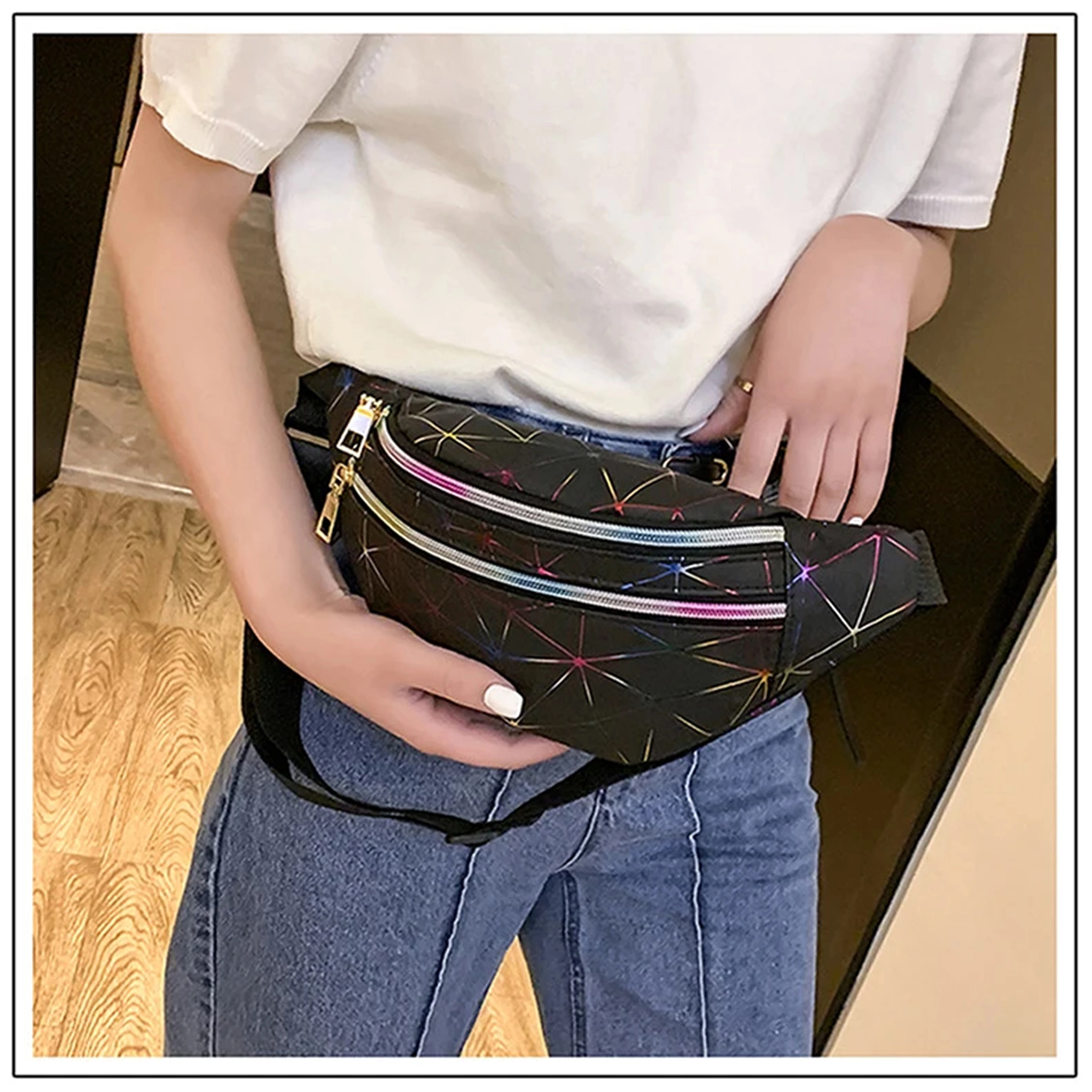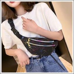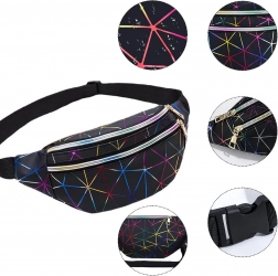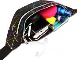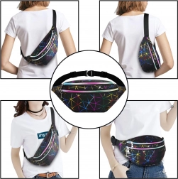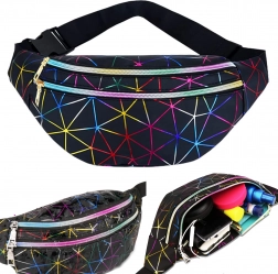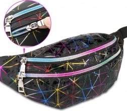 Questo pratico marsupio è una scelta ideale per l’uso quotidiano, i viaggi e il tempo libero. Il motivo geometrico olografico dona un look originale, mentre la suddivisione studiata in tre scomparti con zip mantiene tutto al sicuro al proprio posto. Le tasche frontali possono contenere anche uno smartphone grande, quella posteriore è perfetta per gli oggetti di valore.