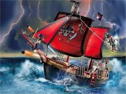 • Motivo decorativo: drammatica nave pirata su mare in tempesta.