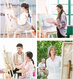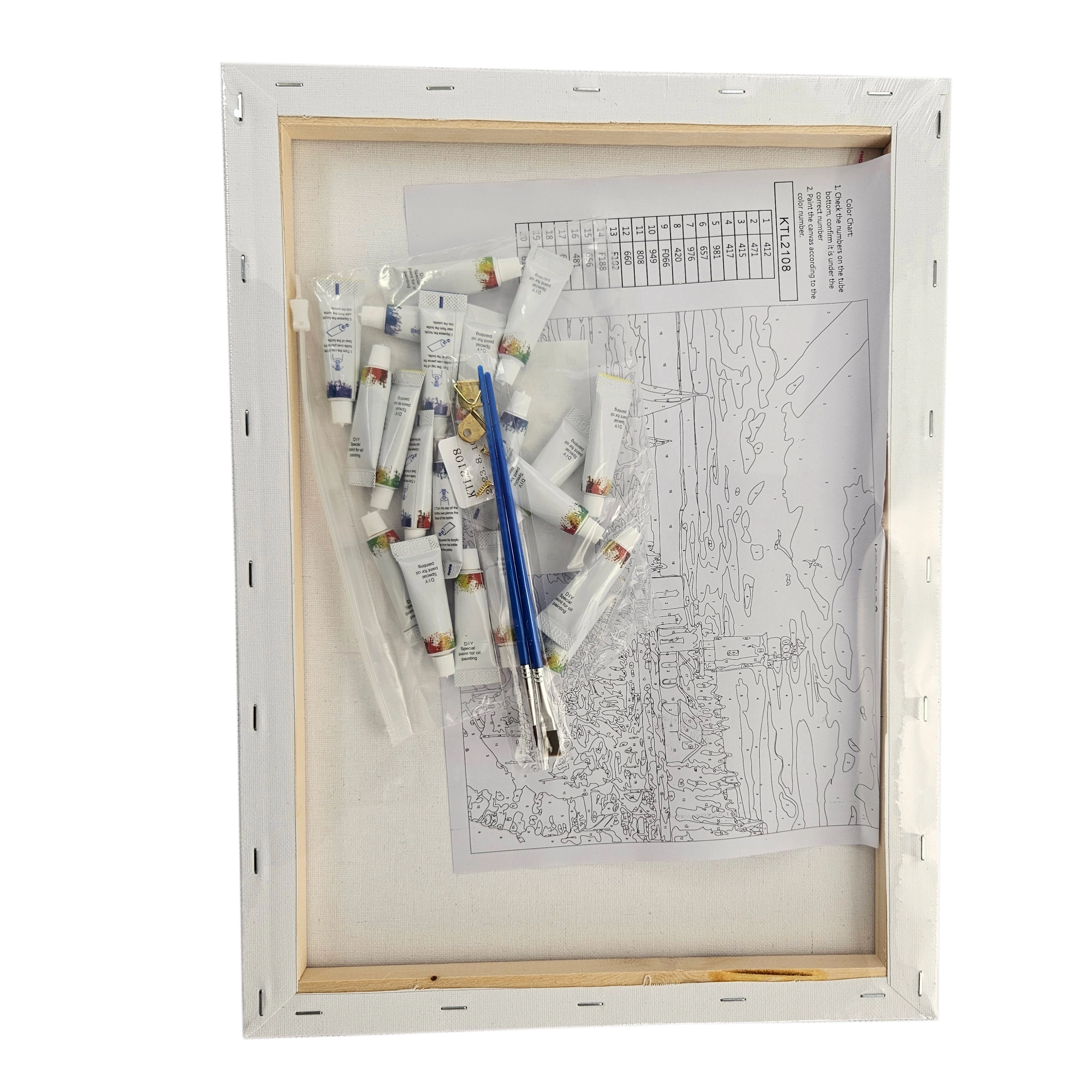 - Dotazione completa: tela numerata, colori acrilici, pennelli, componenti per appenderla.