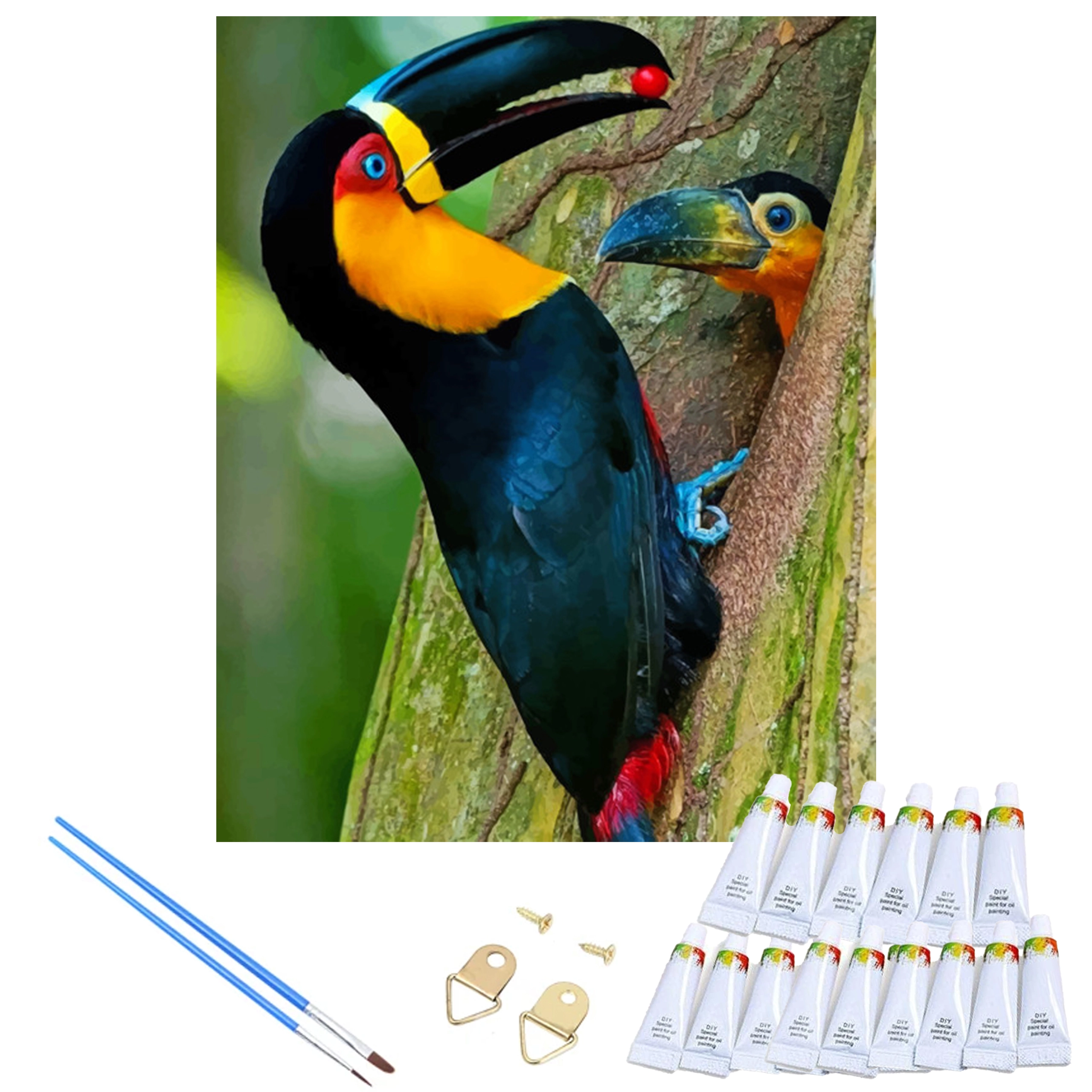 Questo set fai-da-te completo ti permette di realizzare un quadro d’effetto con il motivo esotico del tucano senza alcuna esperienza precedente. Ogni campo numerato sulla tela corrisponde a una specifica tonalità, garantendo una pittura facile, divertente e rilassante. Grazie alla tela tesa su blejtram in legno puoi iniziare subito dopo l’apertura e appendere direttamente l’opera finita.