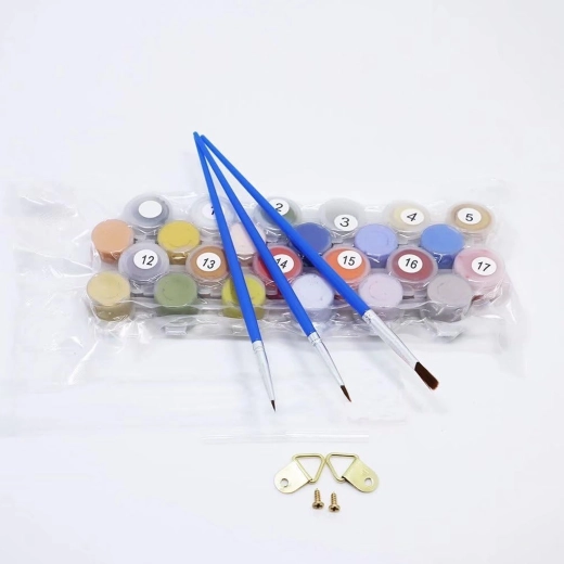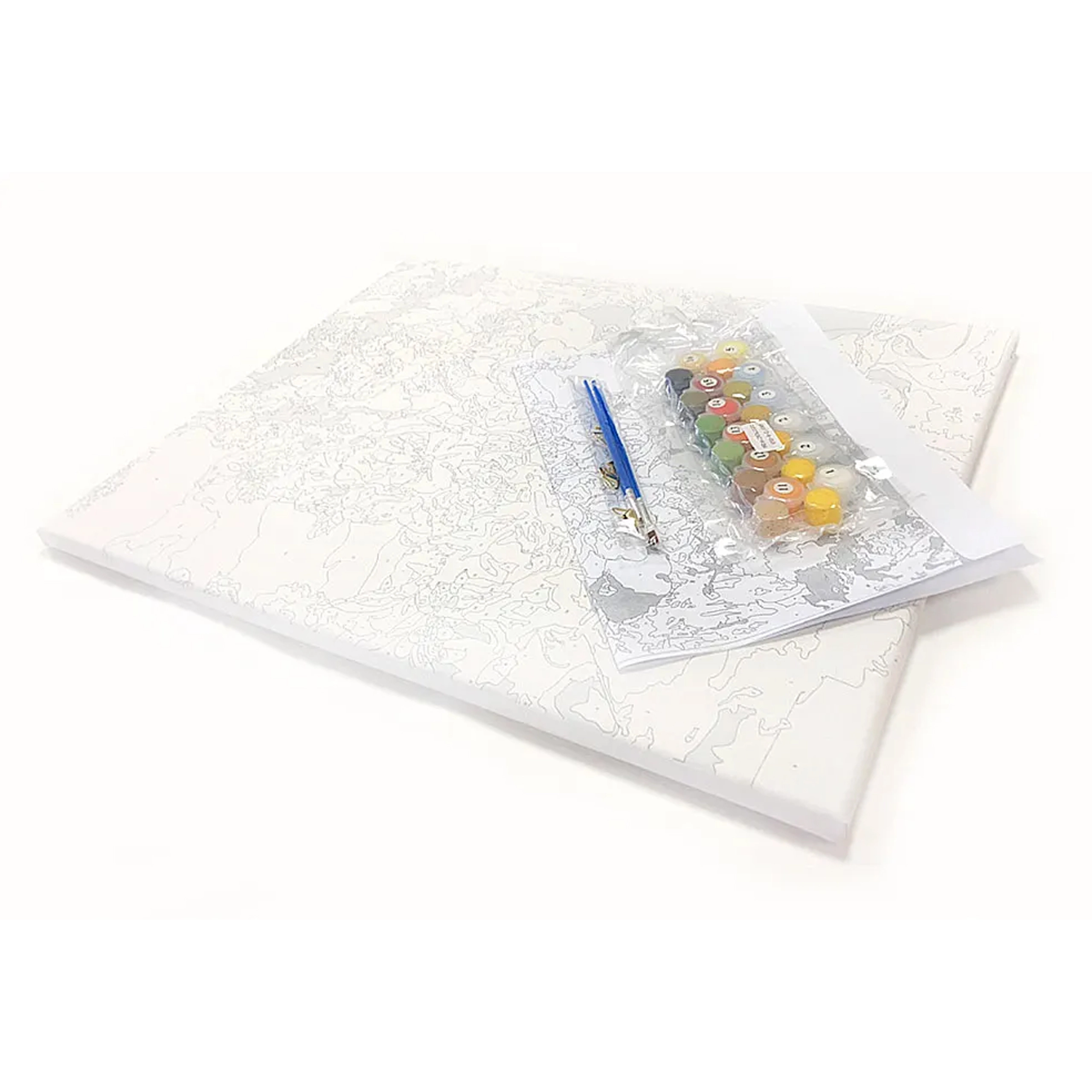 Nella confezione trovi tutto il necessario: tela prestampata, set di colori in vasetti, pennelli e modello di riferimento per un risultato sicuro.