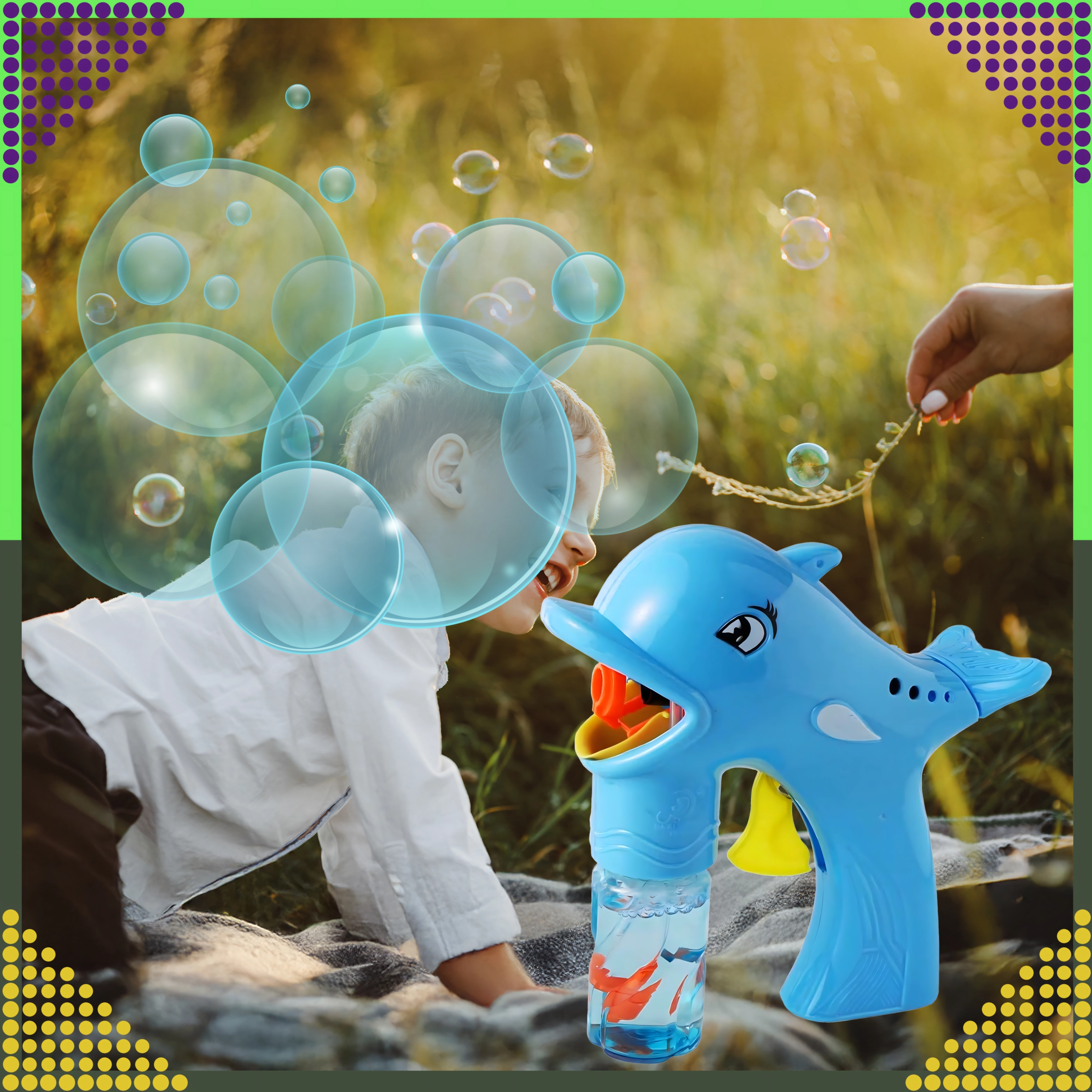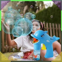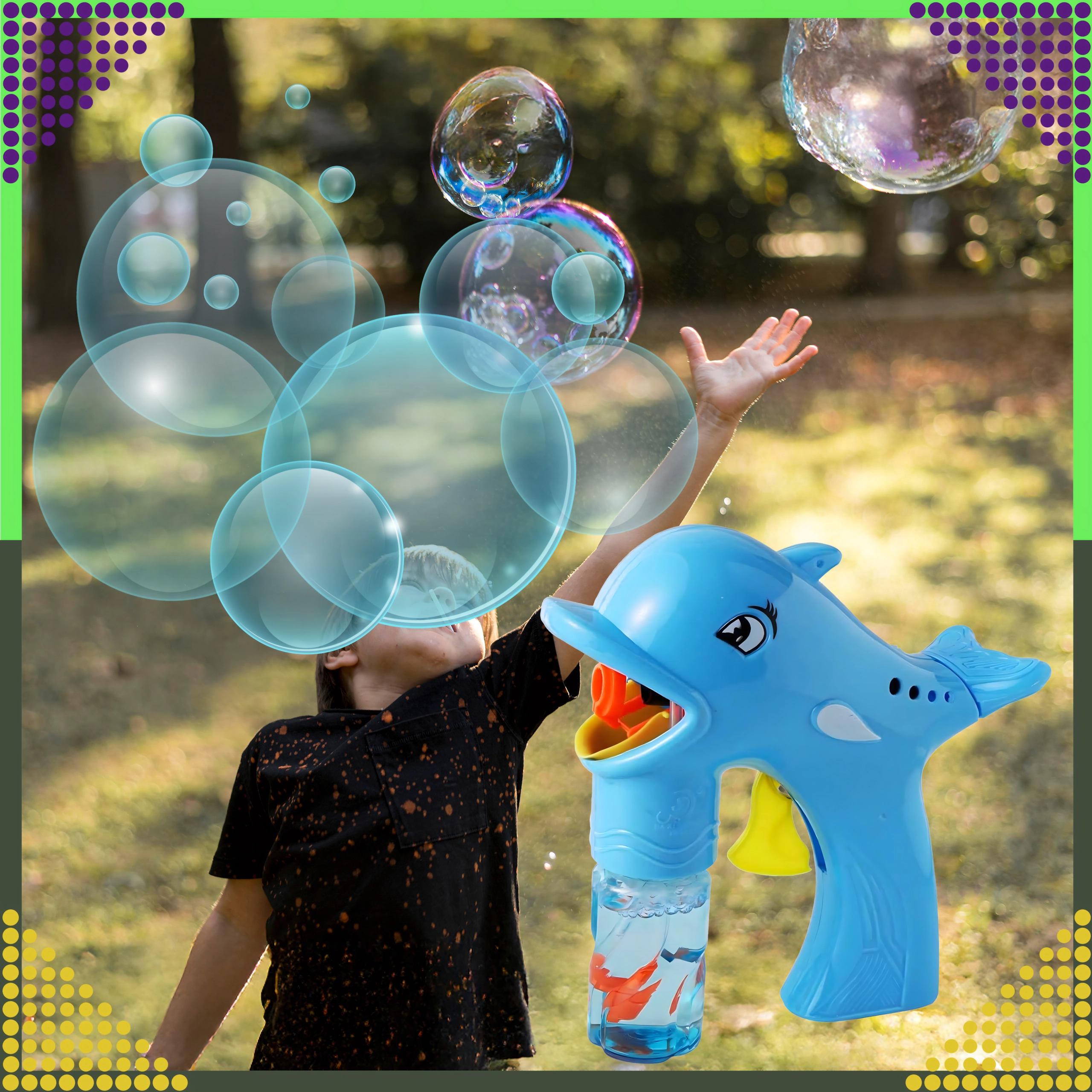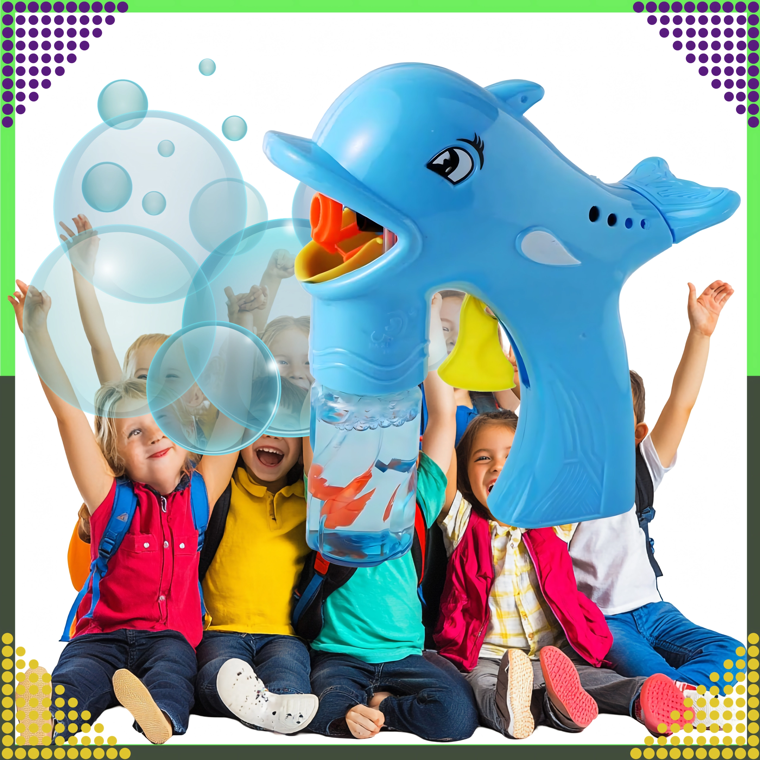Illumina ogni pomeriggio dei bambini con un’esplosione di bolle! La pistola a bolle a forma di delfino, dopo aver fissato la boccetta con la soluzione, sprigiona decine fino a centinaia di bollicine in pochi secondi. Basta avvitare la ricarica, premere il grilletto e godersi lo spettacolo arcobaleno all’aperto o in casa.
