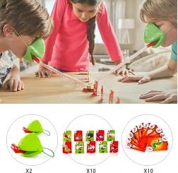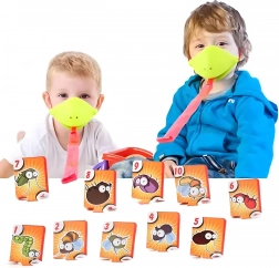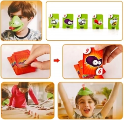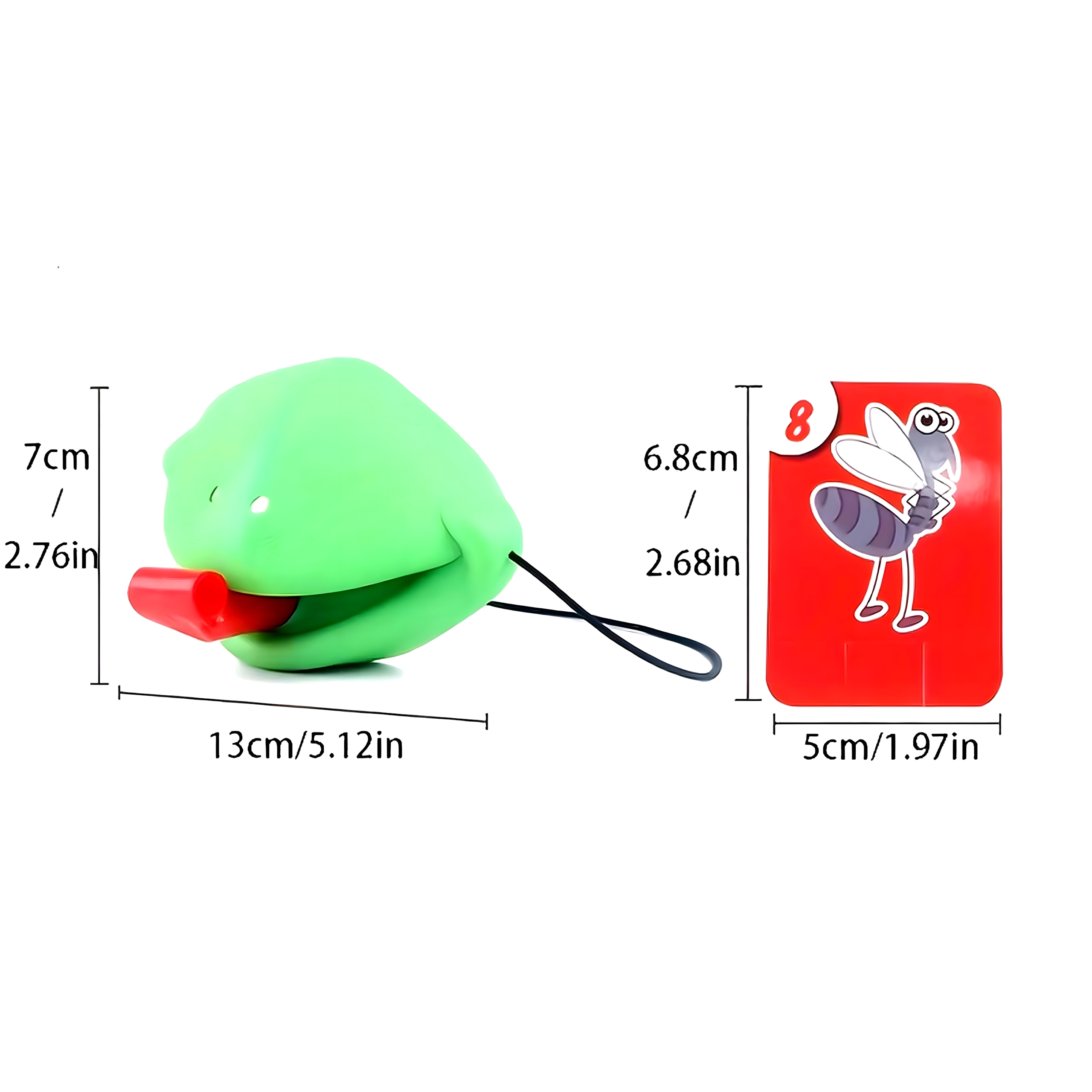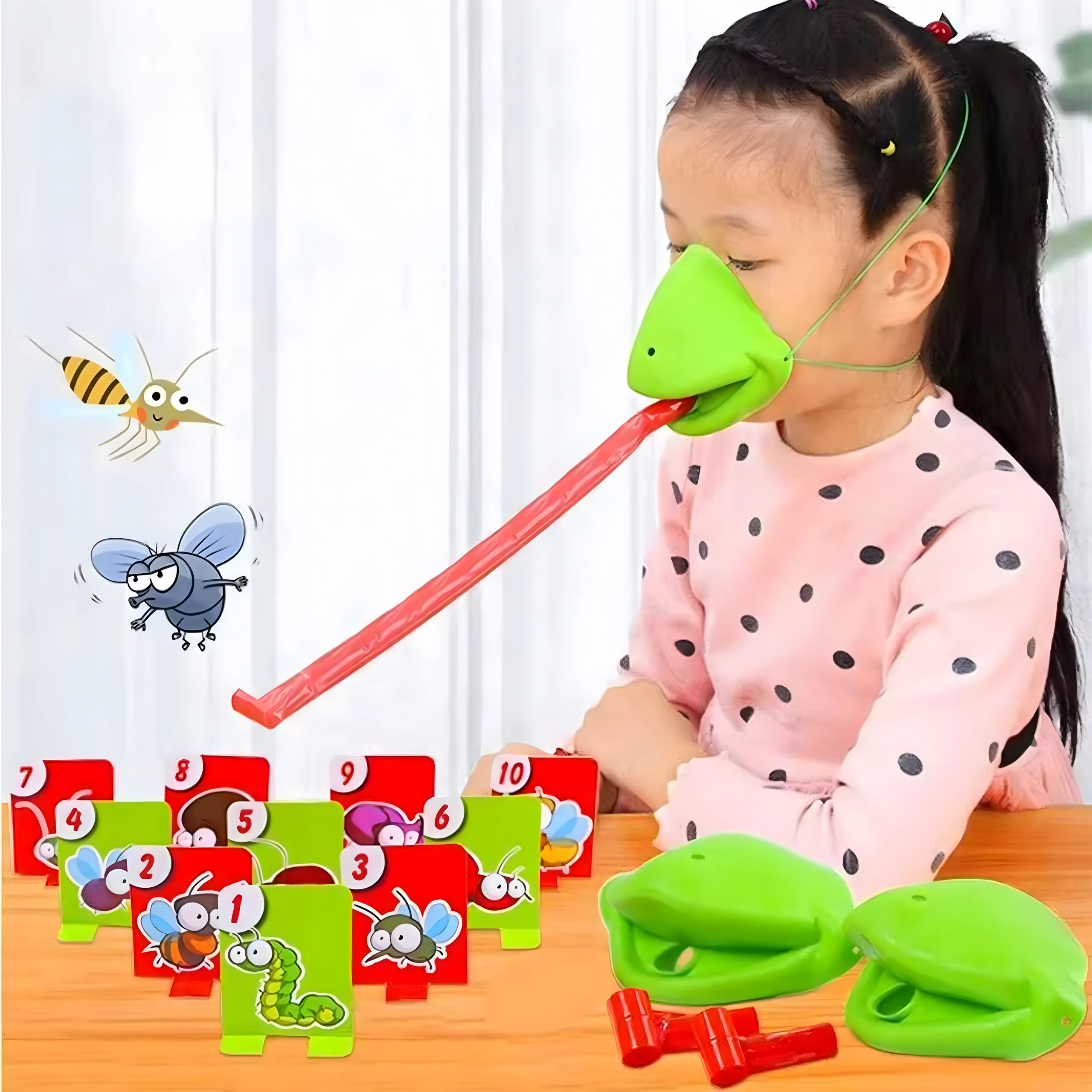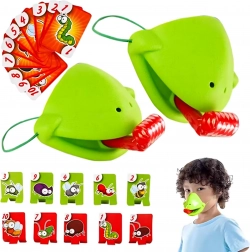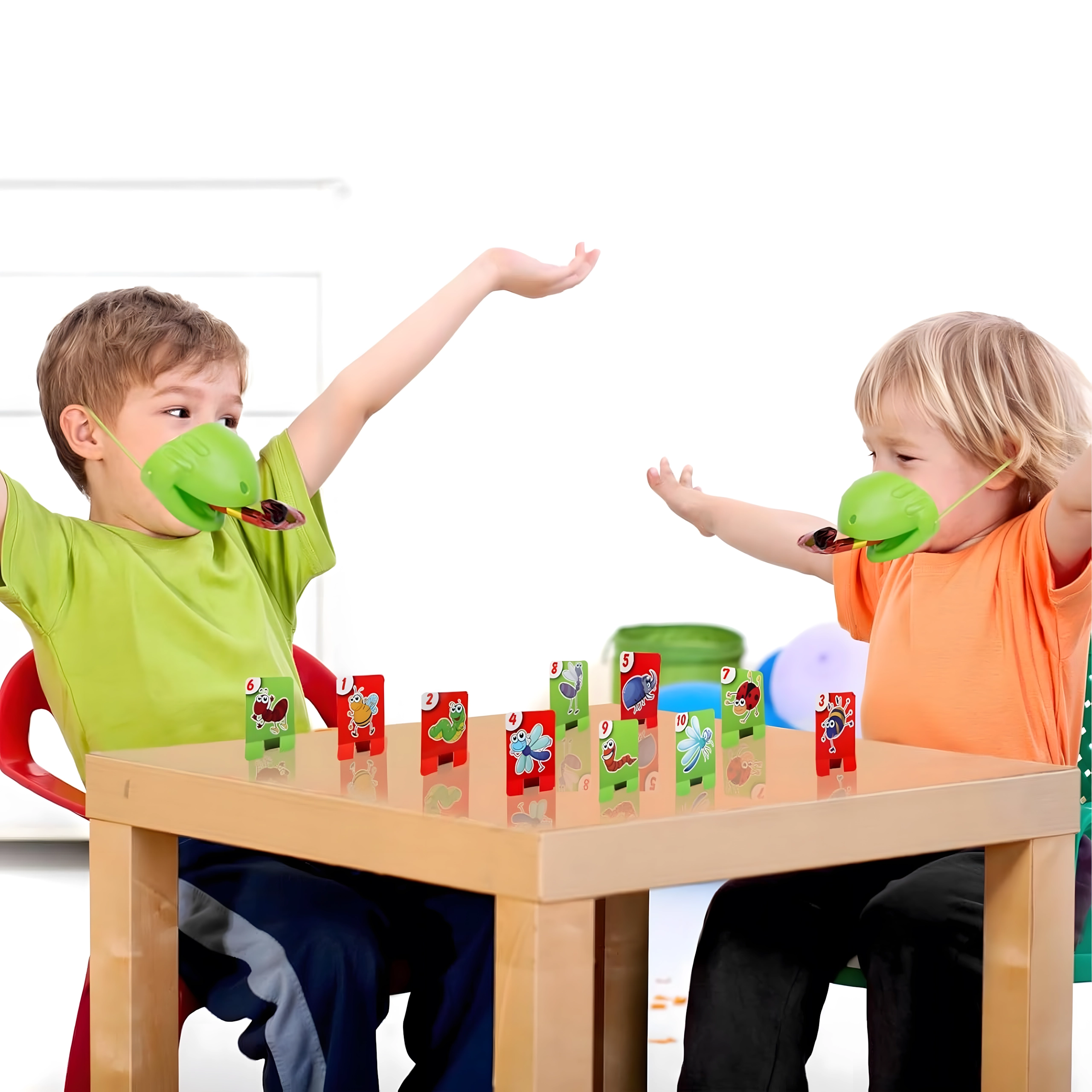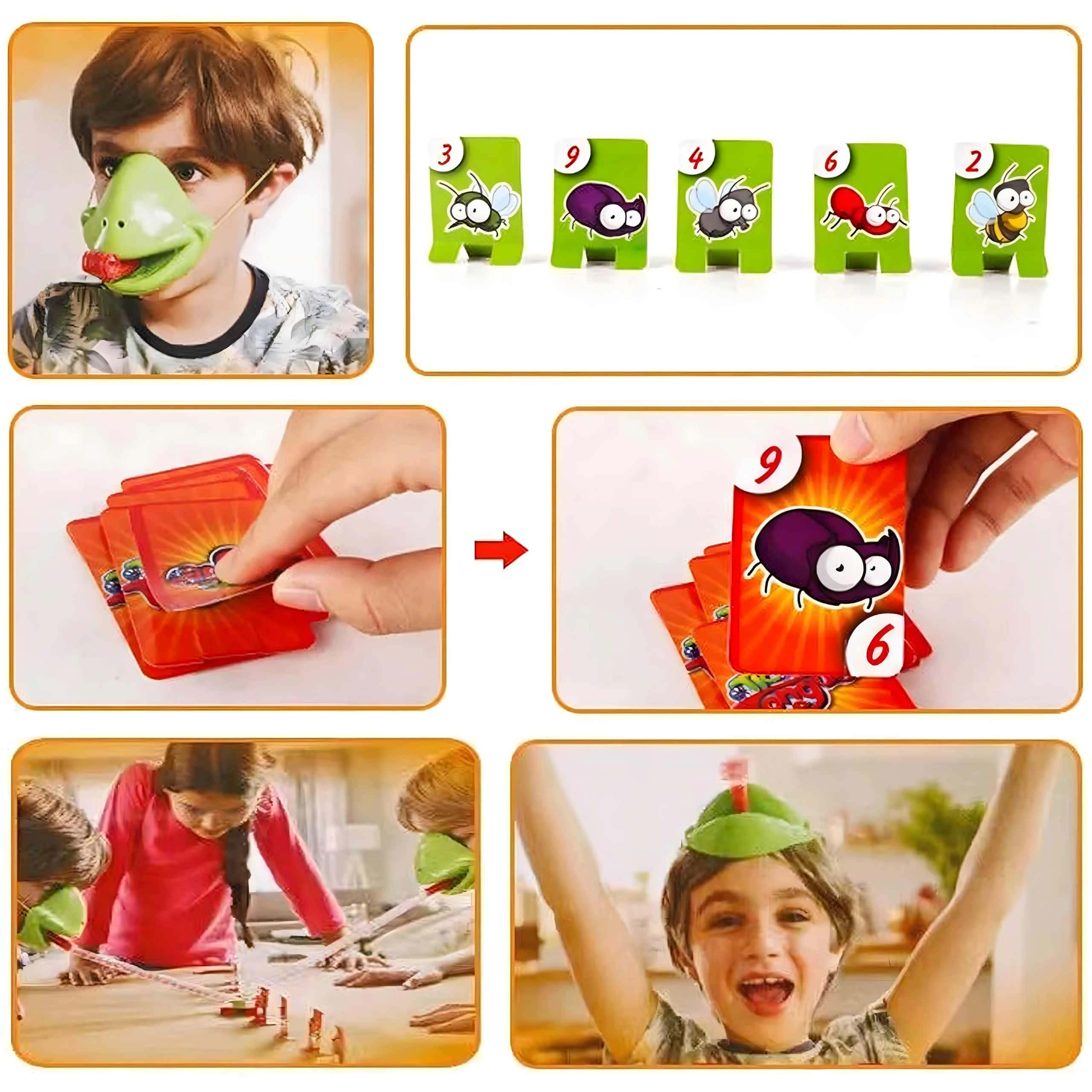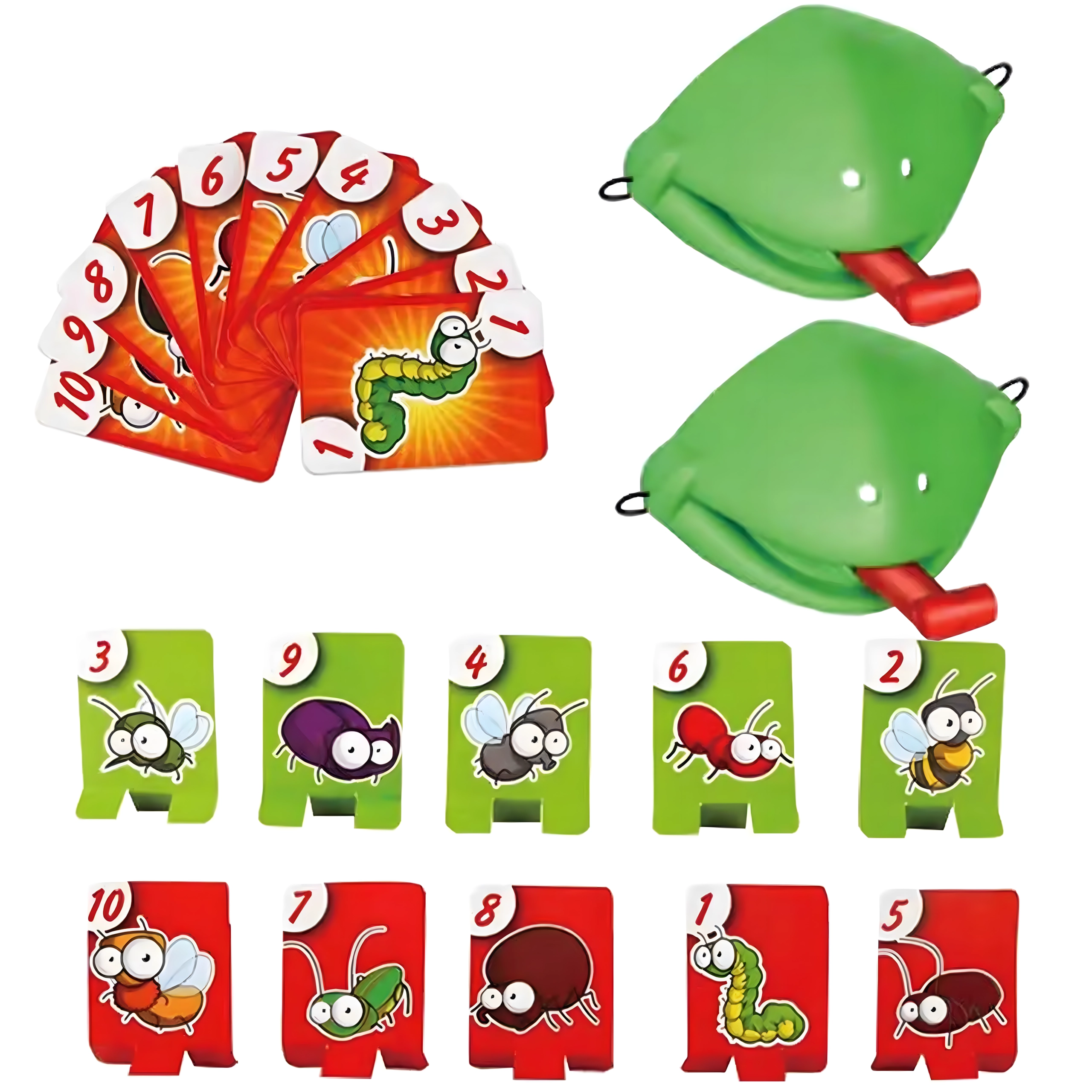Grazie alle cinghie elastiche regolabili la maschera rimane ben salda, la lingua flessibile garantisce un’azione sicura e dinamica e le carte colorate con insetti favoriscono la percezione dei numeri, l’attenzione e la coordinazione mano–occhio. Perfetto per serate in famiglia, feste dei bambini e sfide tra amici.