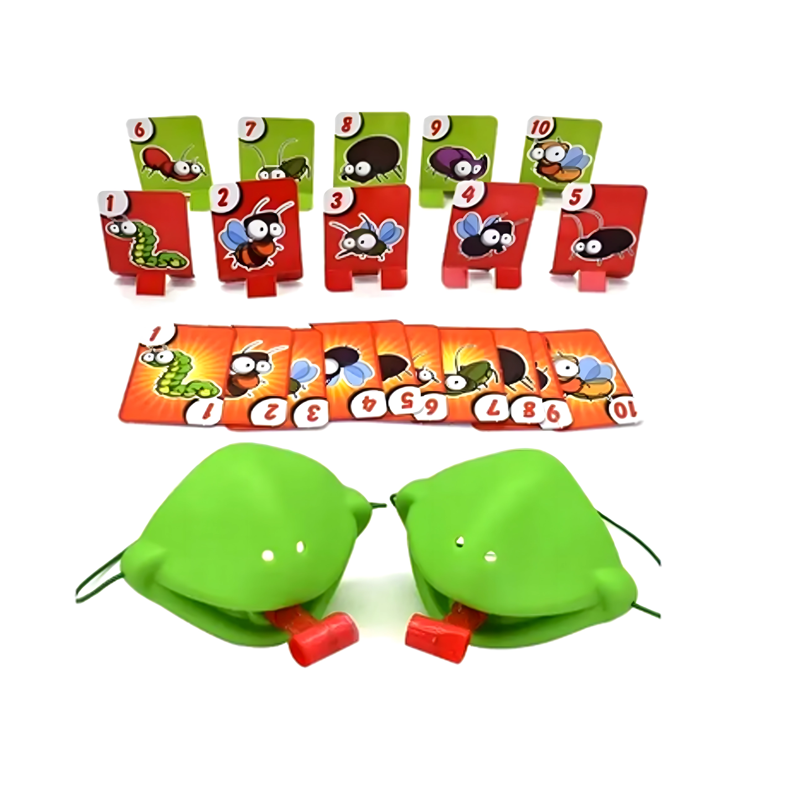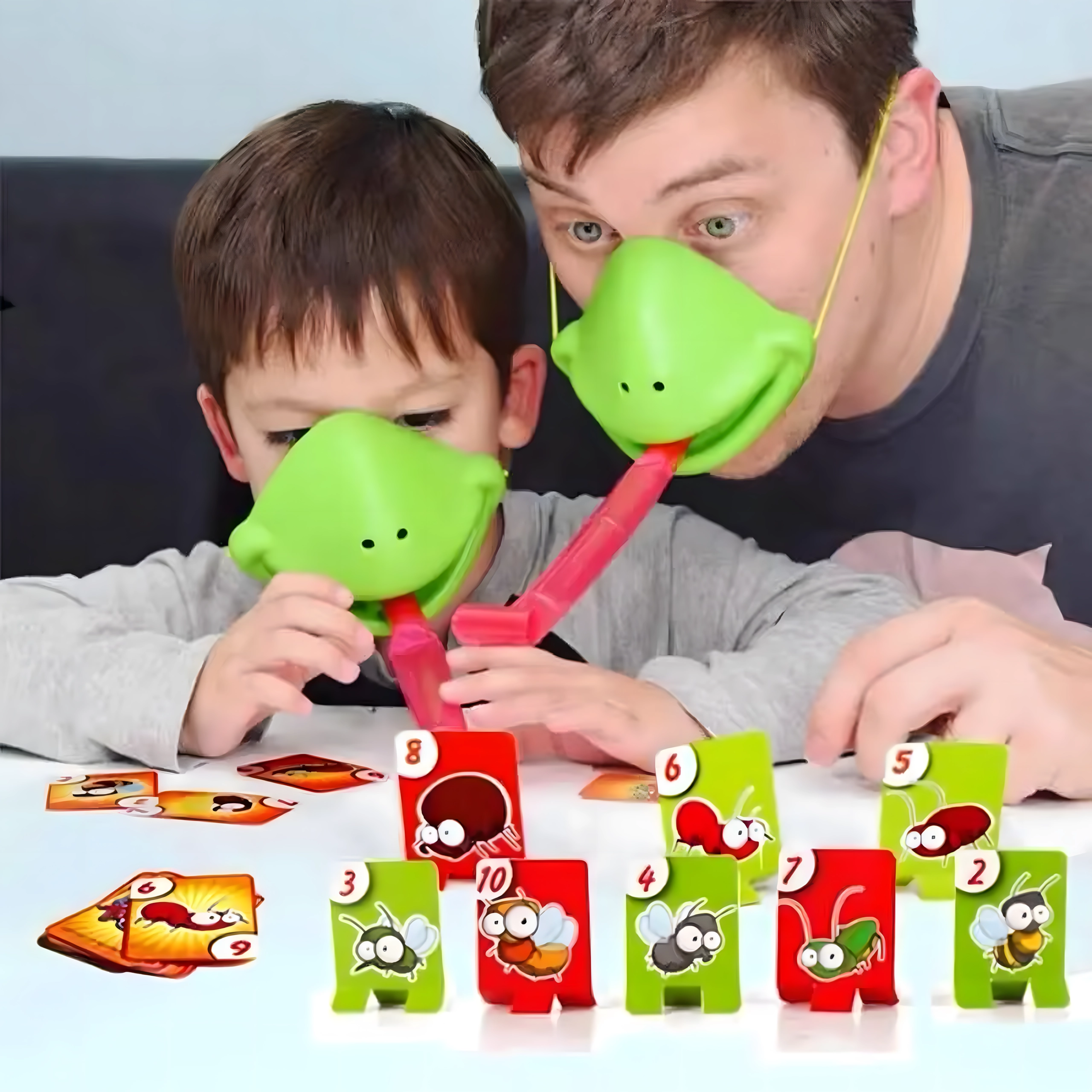 Trasformati in una rana e parti a caccia di insetti! Indossa la maschera, prendi la mira e lancia la lingua verso le carte bersaglio – chi cattura per primo l’immagine o il numero giusto guadagna punti. Il gioco è facile da capire, si prepara in un attimo e conquista giocatori piccoli e grandi.