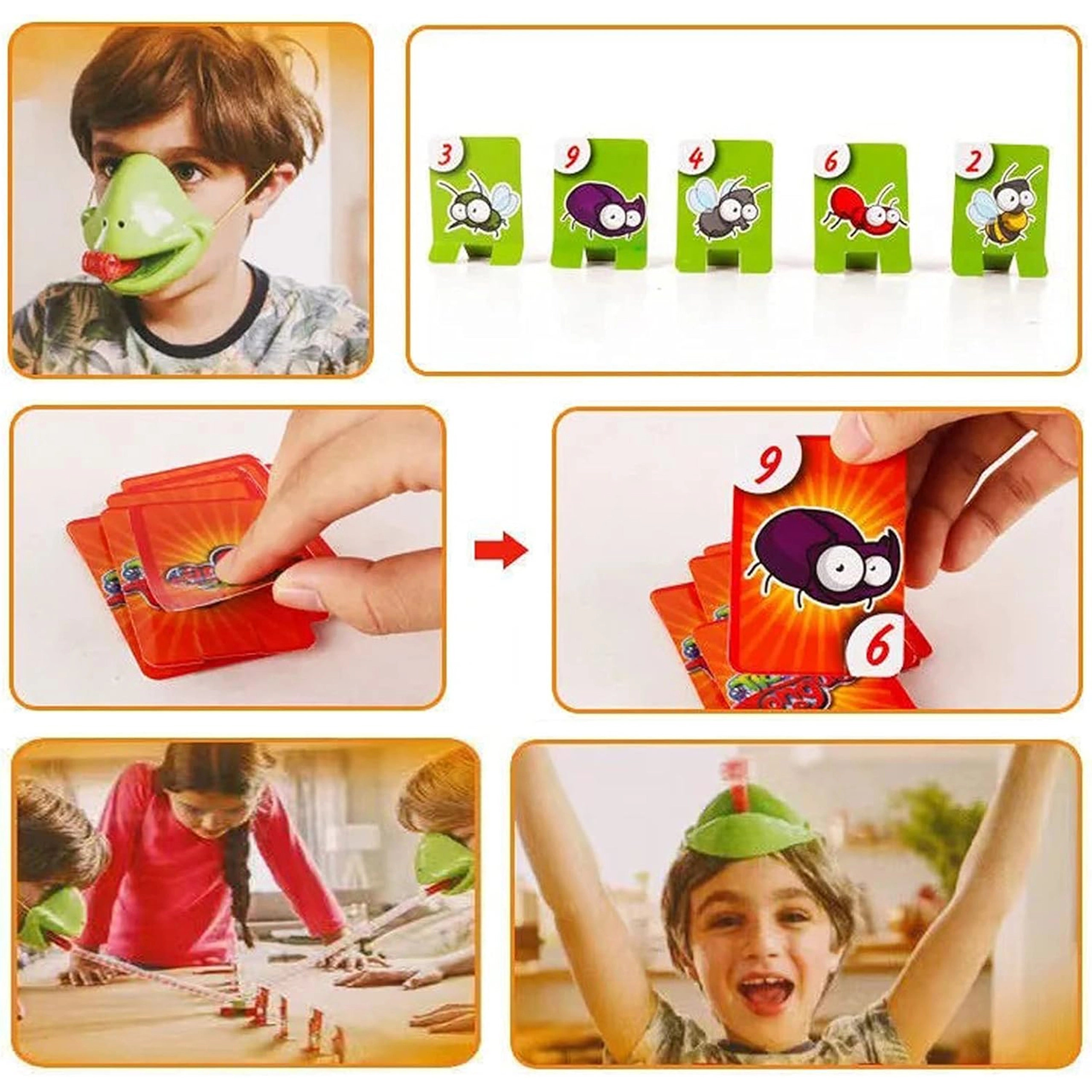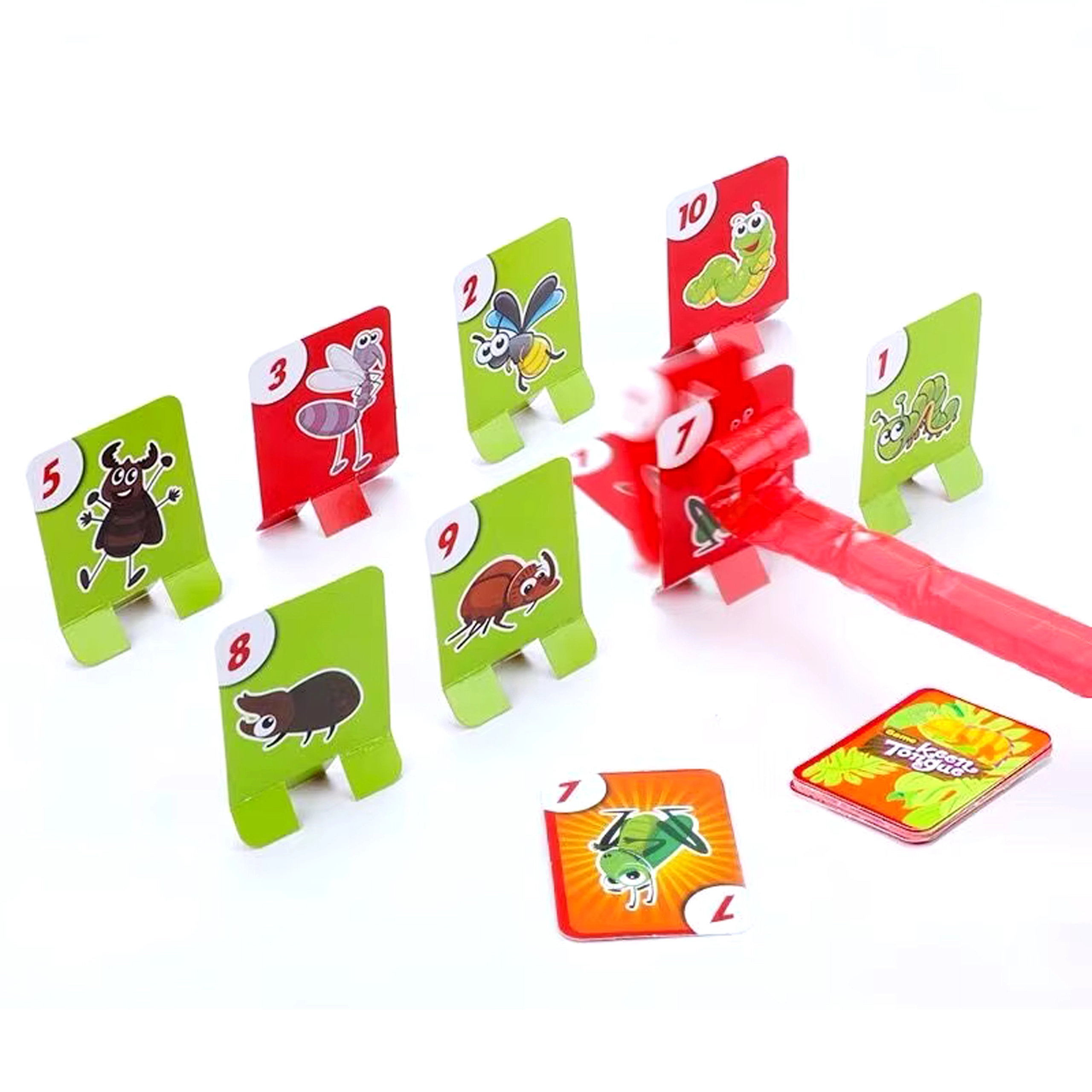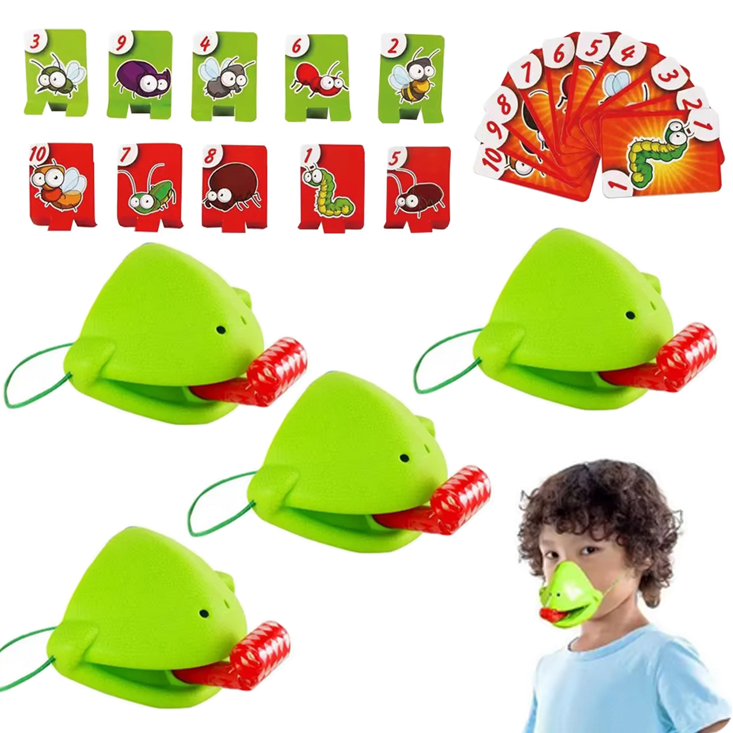 Divertente gioco per famiglie in cui indossi maschere da rana e, con la “lingua”, afferri le carte bersaglio con gli insetti. Azione veloce, tante risate e regole semplici per bambini e adulti. Perfetto per le feste, sviluppa prontezza e coordinazione e offre divertimento competitivo fino a 4 giocatori.