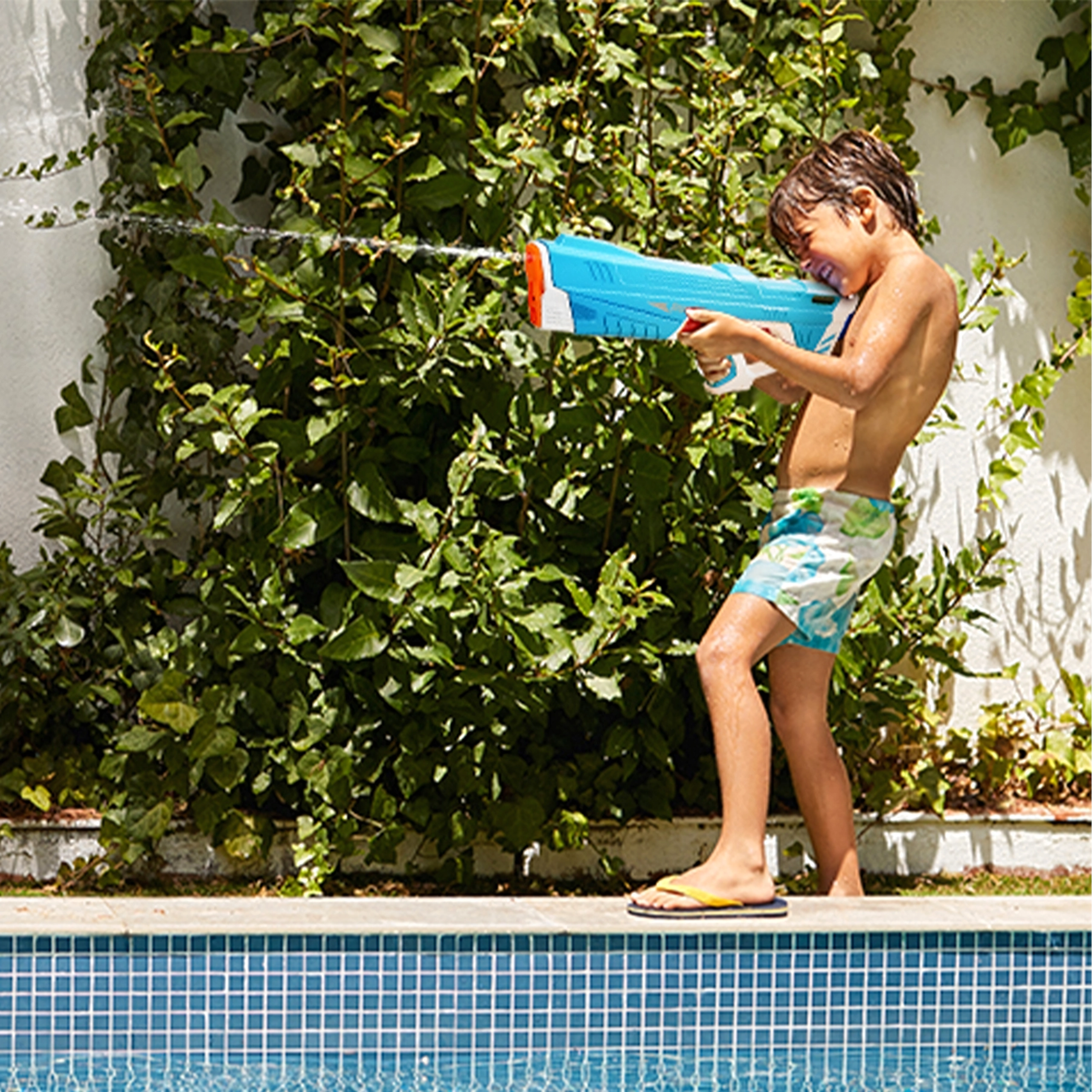Il motore integrato garantisce un getto d'acqua rapido e fluido: basta premere il grilletto e il divertimento ha inizio.