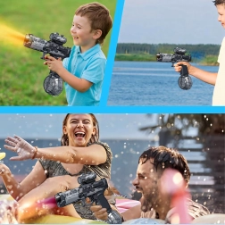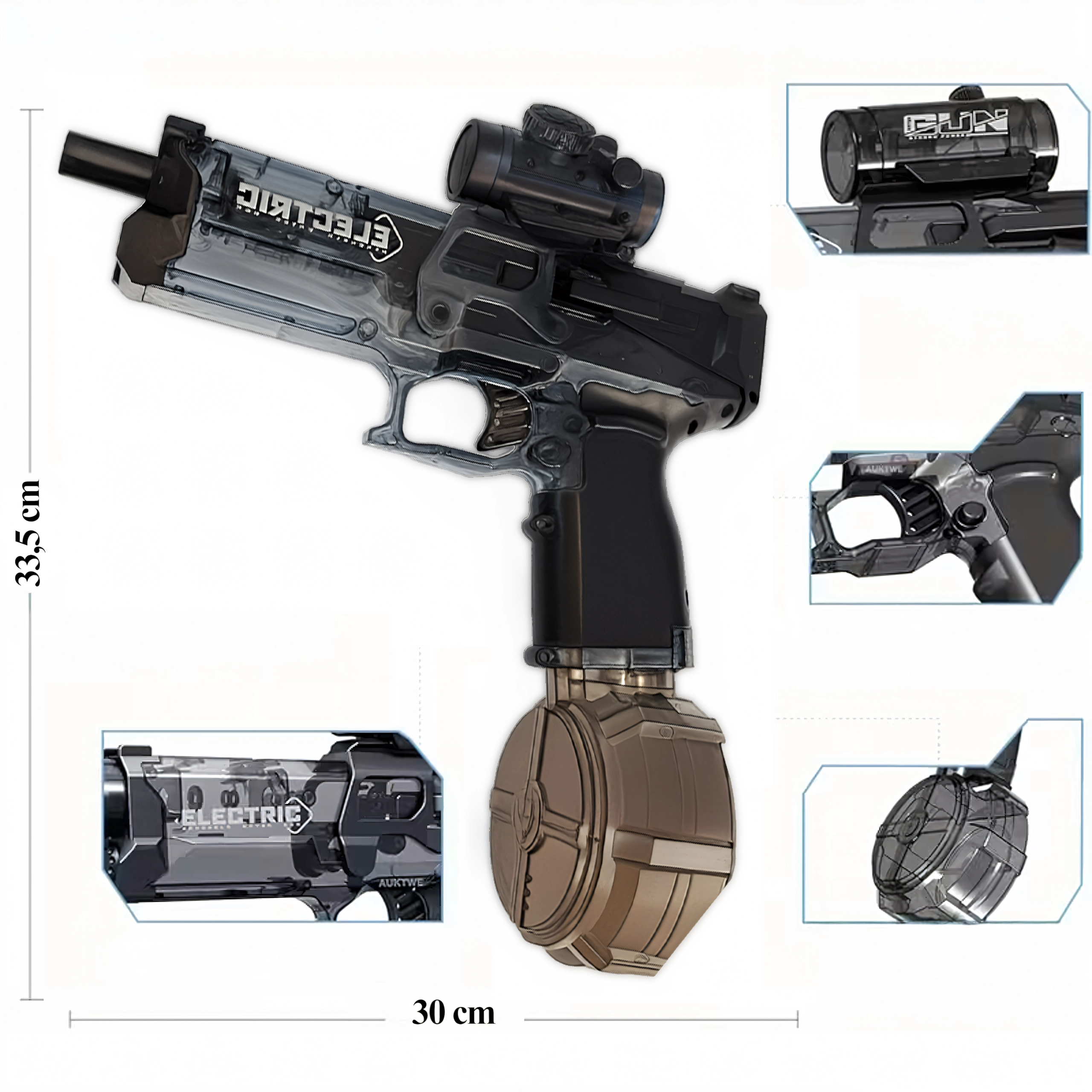 Questa potente pistola d’acqua elettrica offre un gioco dinamico e confortevole per bambini e adulti. Grazie al grilletto automatico spara un flusso continuo d’acqua senza bisogno di pompare, mentre il serbatoio ad alta capacità riduce la frequenza dei rabbocchi. La batteria ricaricabile via USB integrata garantisce fino a 35 minuti di divertimento con una sola ricarica.