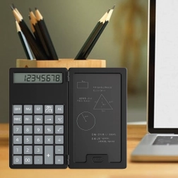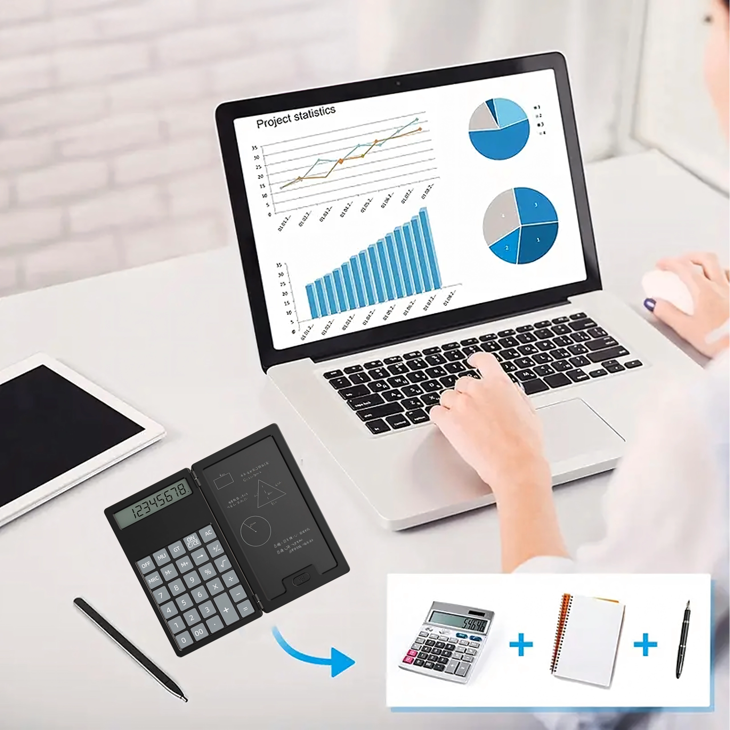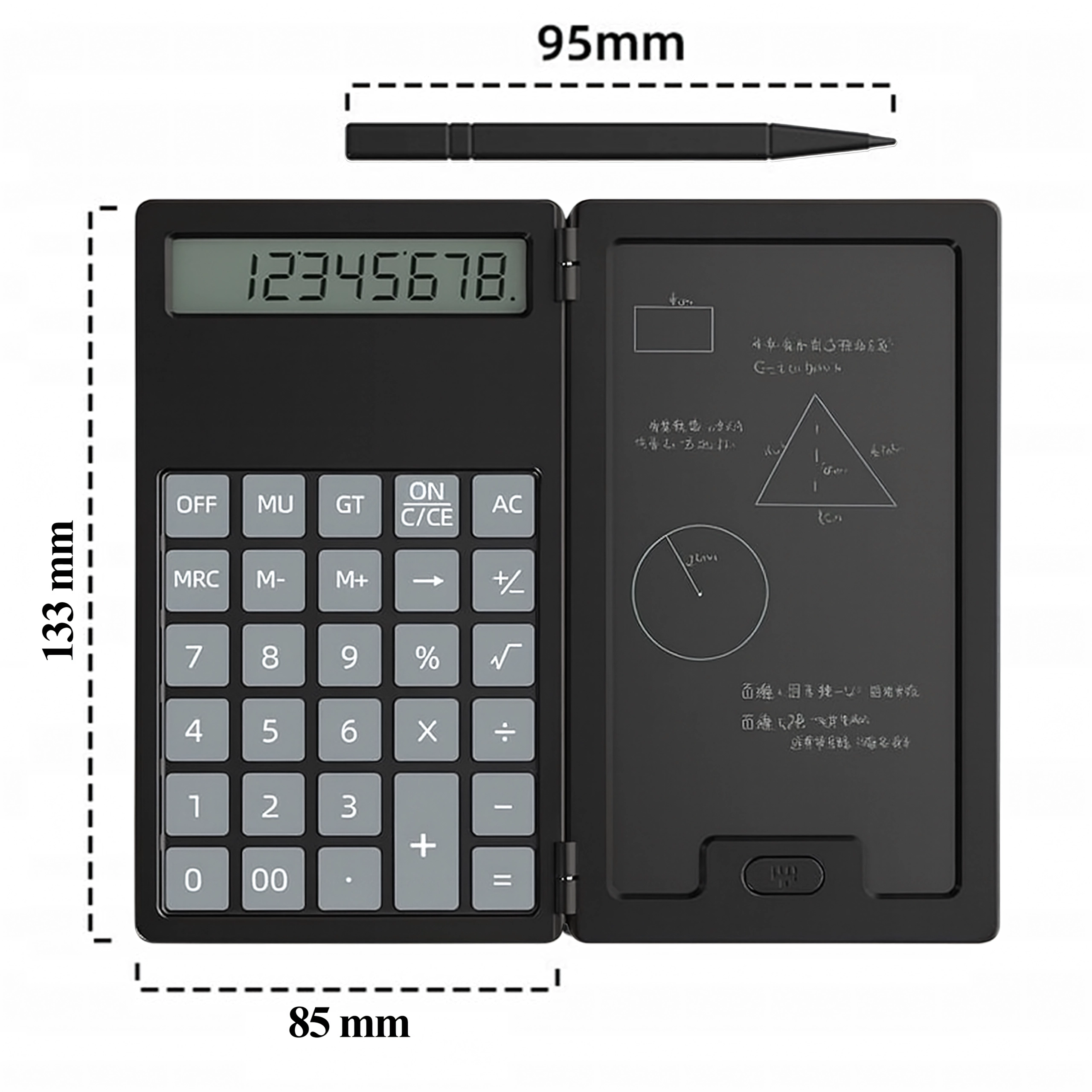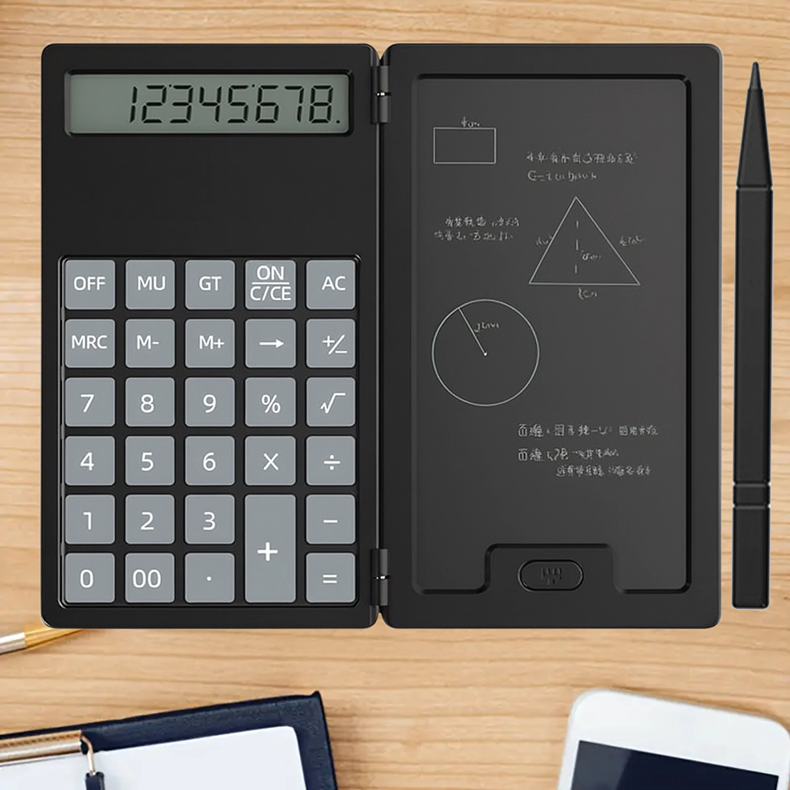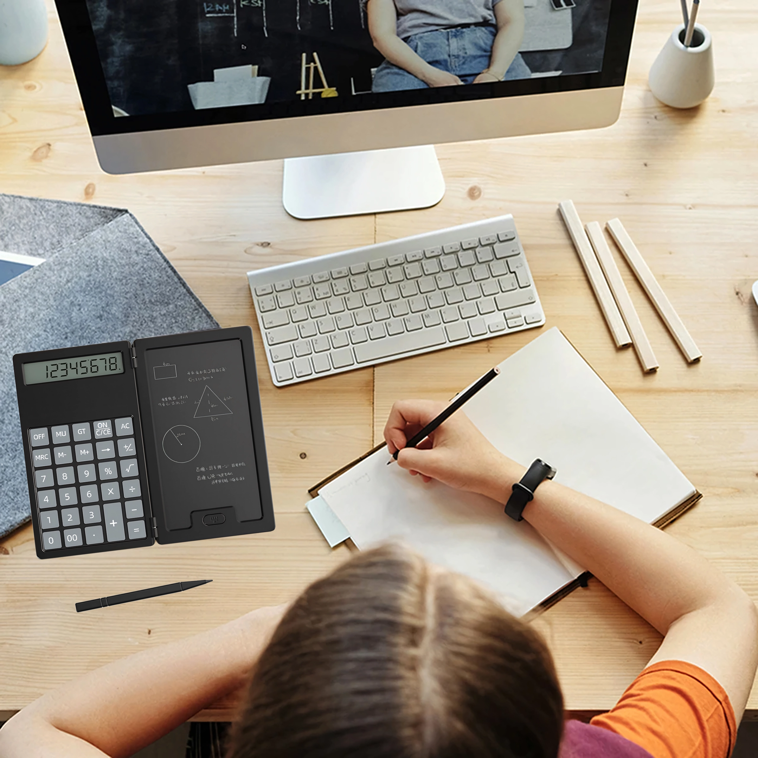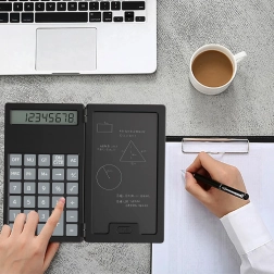 Dispositivo compatto 2 in 1 che unisce calcolatrice scientifica e taccuino LCD. Ideale per scuola, ufficio e casa – calcola, prendi appunti e conserva note senza carta, in modo rapido e pratico in un unico posto.