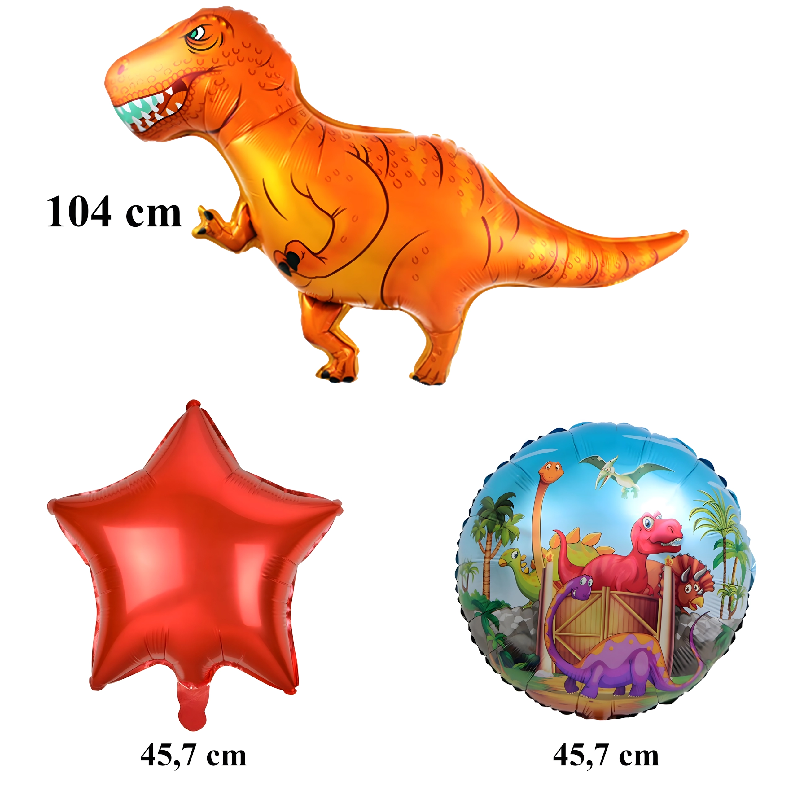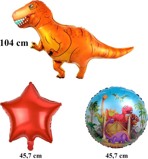 - 1× palloncino dinosauro, 2× palloncini stampati, 2× stelle rosse