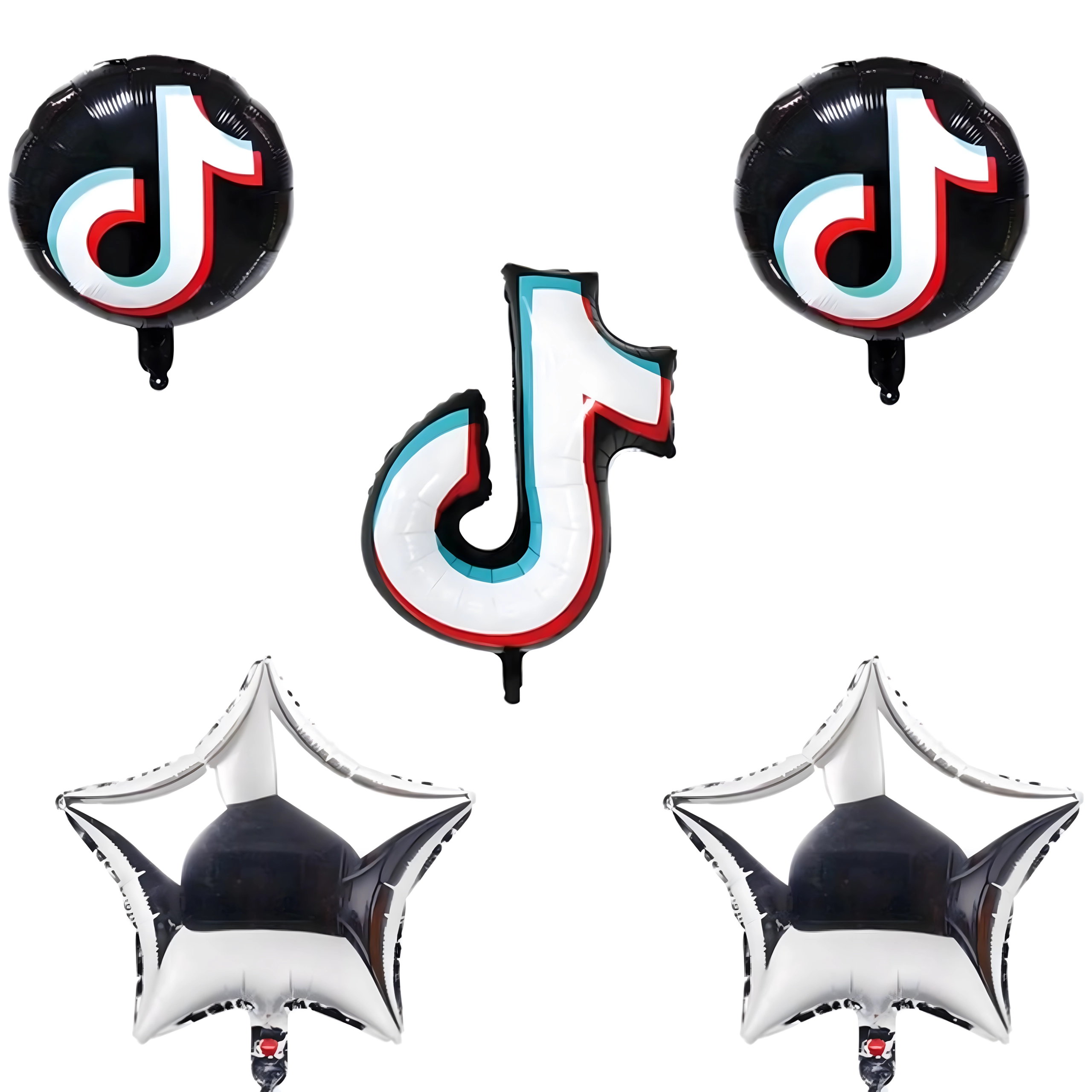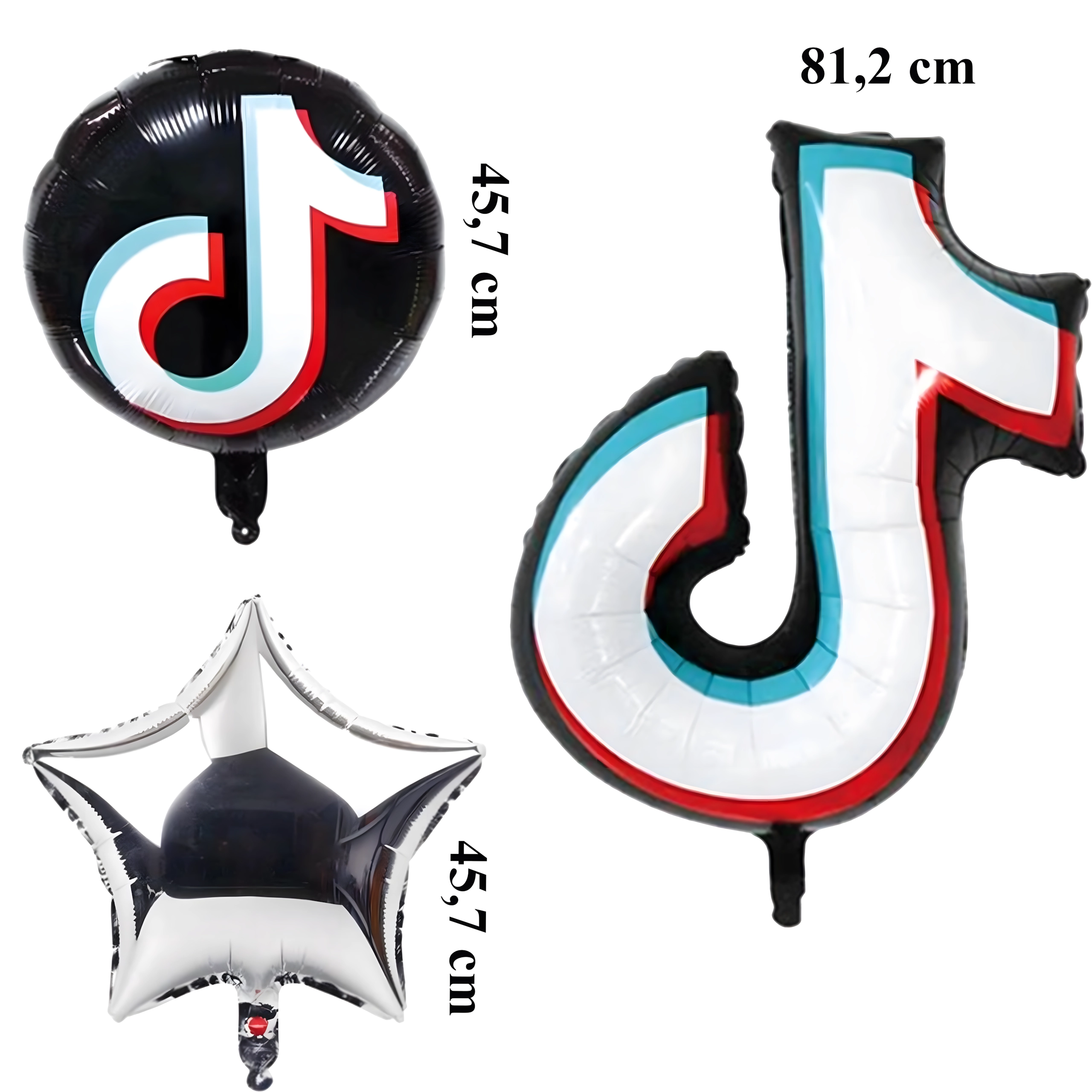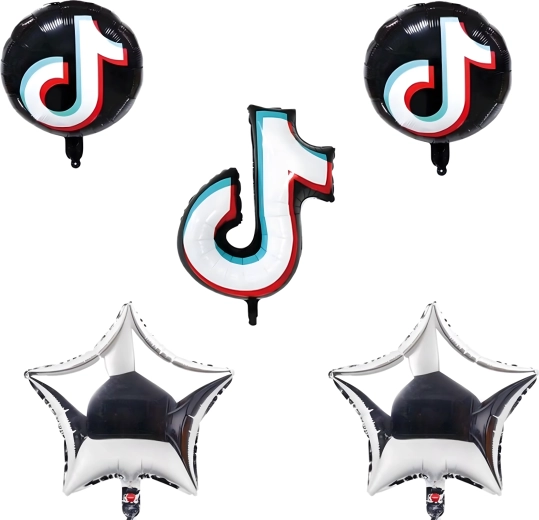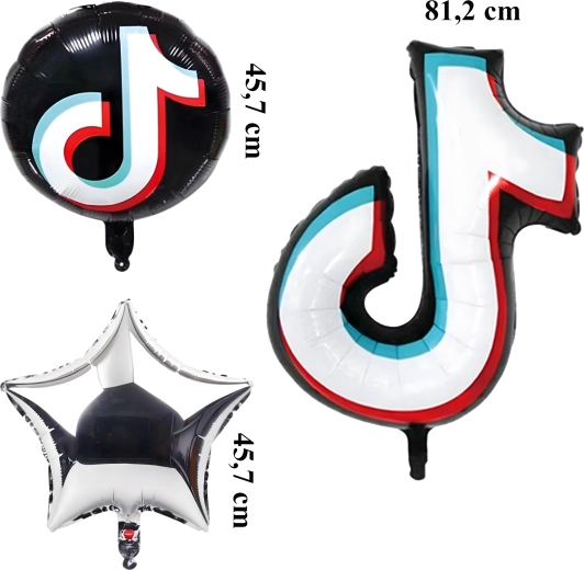 - Contenuto del set: 1× nota musicale in foil 81,2 cm, 2× palloncino rotondo nero TikTok 45,7 cm, 2× stellina argentata