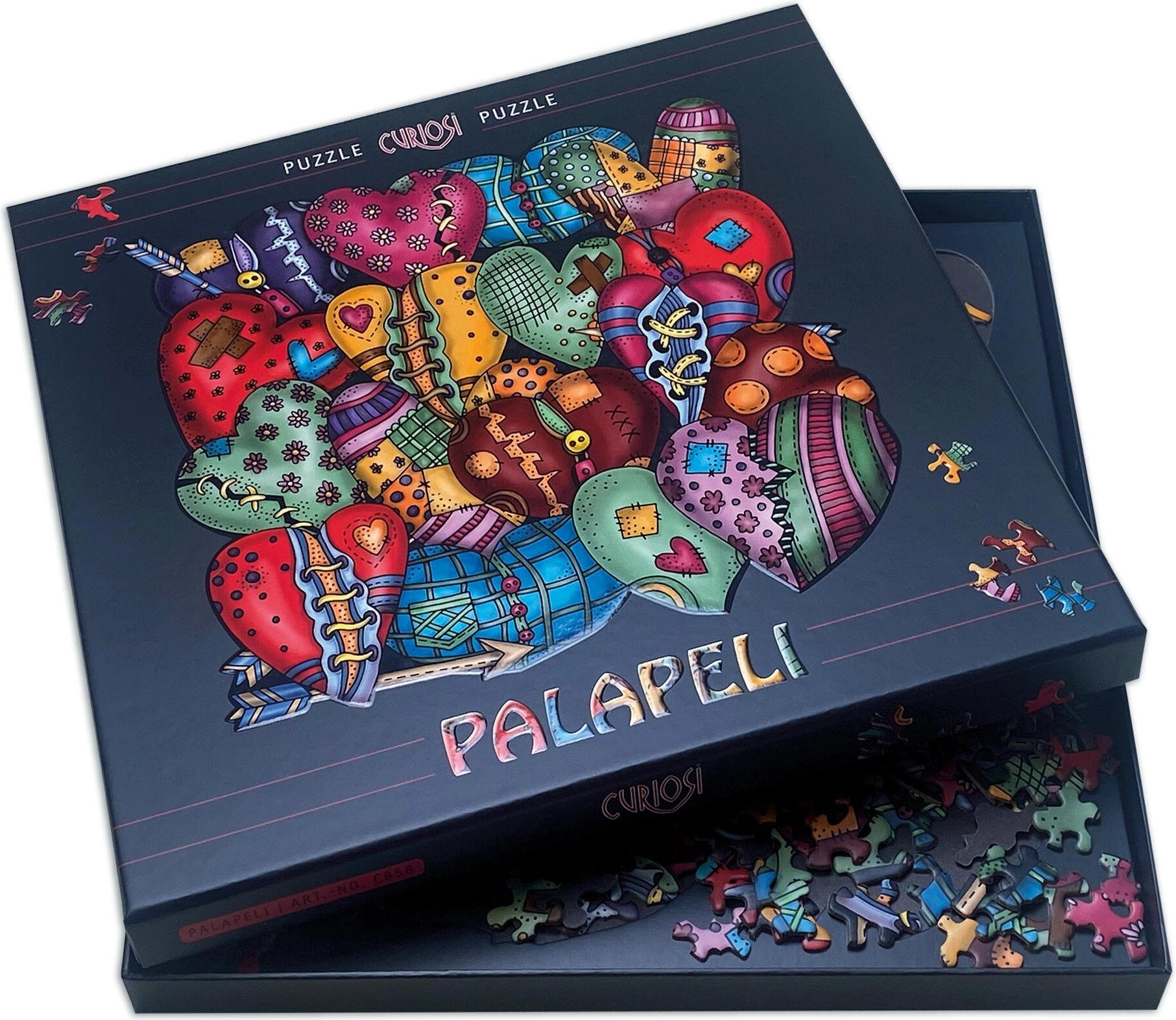 Il puzzle Palapeli Cuore offre un’esperienza di composizione insolita grazie al motivo colorato realizzato a mano e alle forme particolari dei pezzi. Il risultato è un elemento di design che spicca perfettamente negli interni.
