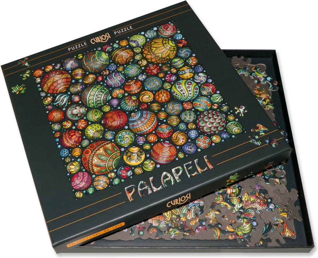 Goditi un’esperienza di montaggio unica con i puzzle Palapeli, caratterizzati da un motivo colorato creato a mano, pieno di biglie vivaci. Grazie alle tessere dalla forma non convenzionale, l’assemblaggio è divertente, creativo e visivamente d’impatto.