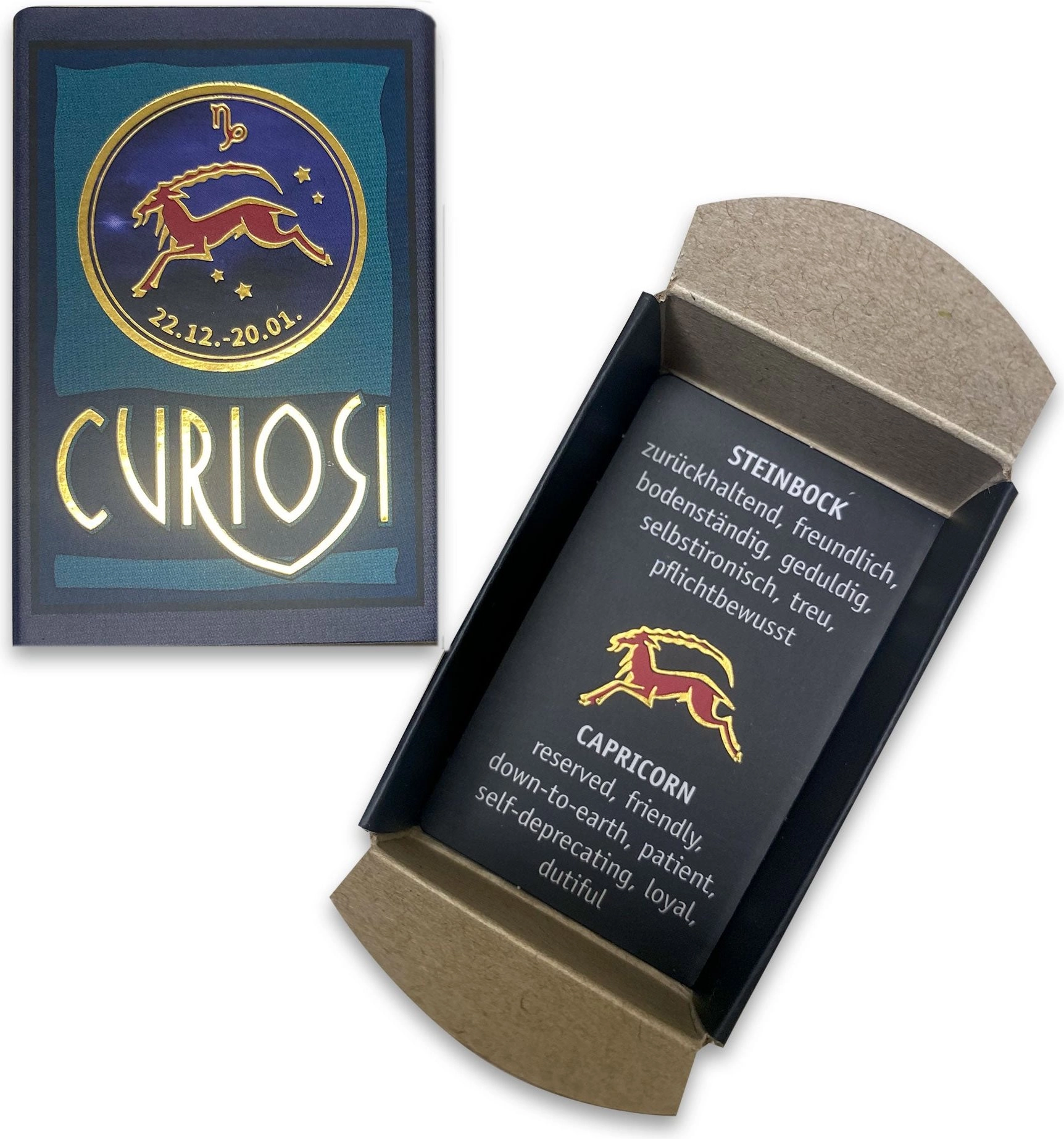 Scopri il mini puzzle con il segno Capricorno del brand Curiosi. Grazie ai pezzi dalla forma insolita, al raffinato effetto dorato e ai tempi di montaggio rapidi, è ideale per una breve pausa di relax. Il soggetto finito ha un diametro di circa 9 cm e si presta perfettamente come decorazione di stile o pezzo da collezione.