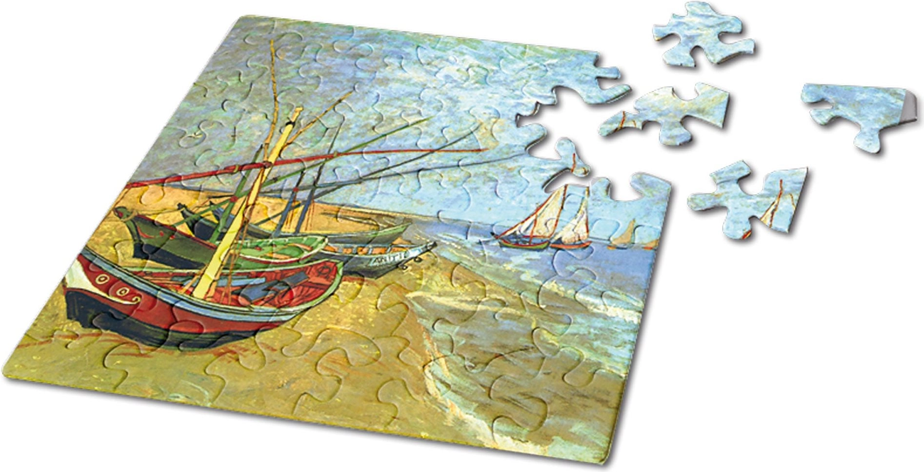 Il puzzle quadrato Q Art con il motivo “Barche da pesca a Saintes-Maries-De-La-Mer” offre un’esperienza di composizione unica in un formato compatto. Le forme non convenzionali dei pezzi aumentano il divertimento e il livello di sfida, mentre il motivo accattivante conquisterà gli appassionati di arte e design.