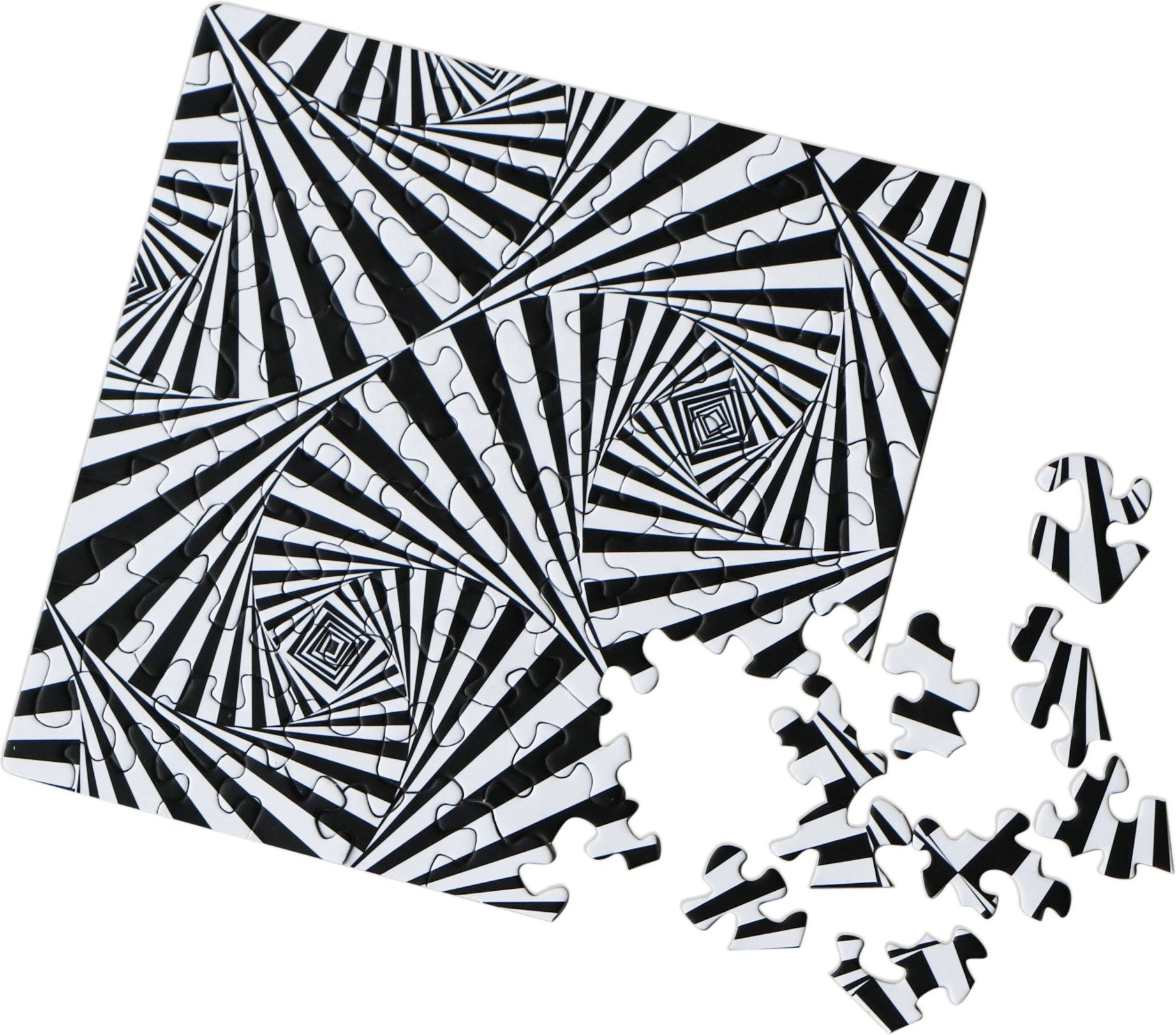 Il puzzle quadrato Q Shimmer: Illusione conquisterà chiunque cerchi un’esperienza di composizione compatta e stilosa. Grazie alle forme non convenzionali dei pezzi, offre una piacevole sfida e, una volta completato, un originale effetto visivo.