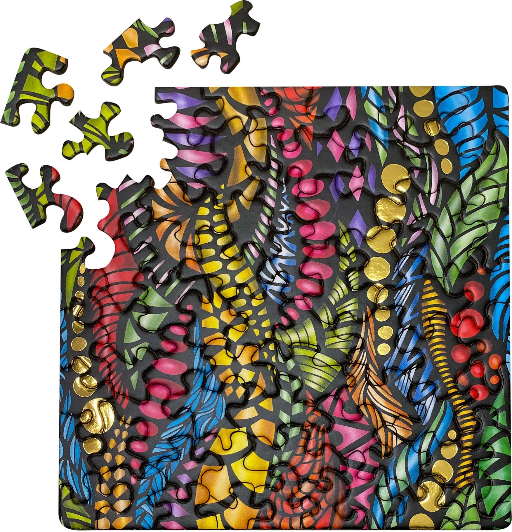 Il puzzle quadrato Curiosi Q Gold nel motivo I offre un’esperienza visiva unica grazie al lucente effetto dorato, che risalta magnificamente una volta completato. Con 72 pezzi e forme insolite, l’assemblaggio è giocoso ma piacevolmente impegnativo.
