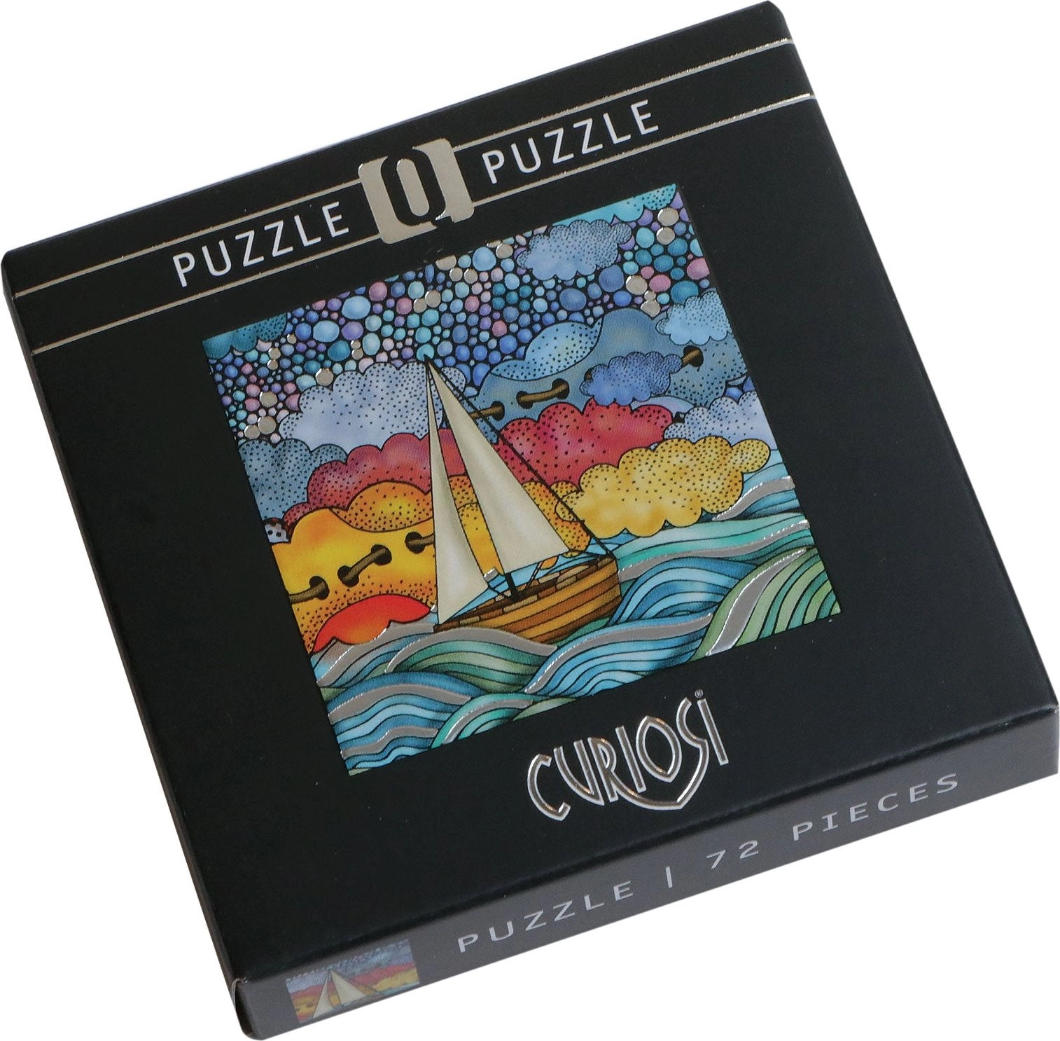 Questi puzzle quadrati si distinguono per il formato compatto e l’elegante effetto metallico, che conferisce al motivo della barca a vela un aspetto unico. Grazie alle forme originali dei pezzi, l’assemblaggio è divertente e al contempo piacevolmente impegnativo.