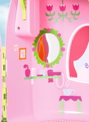 Scoprite un mondo di fantasia con la Casetta Storie da Scrivere BABY born, dove ogni angolo stimola nuove storie. Aprendo la casetta a forma di fiore si apre un meraviglioso interno con tavolino, camino e un'altalena appesa al soffitto della sala giochi. Sul muro c'è un vano per conservare la bacchetta magica, così il gioco non finisce mai.