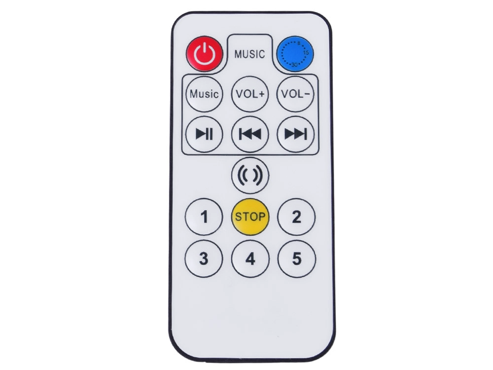 - Accensione/spegnimento, dondolio, musica, volume, timer