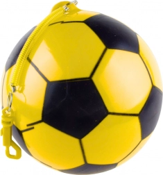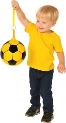 Palla di gomma gialla con diametro di 22 cm e motivo calcistico, ideale per giocare in casa e all’aperto. Realizzata in gomma resistente ed elastica, rimbalza alla grande e, grazie al pratico occhiello, è possibile fissare una corda per giochi e allenamenti dei riflessi. Leggera, sicura per i bambini e ben visibile su erba, spiaggia e in giardino.
