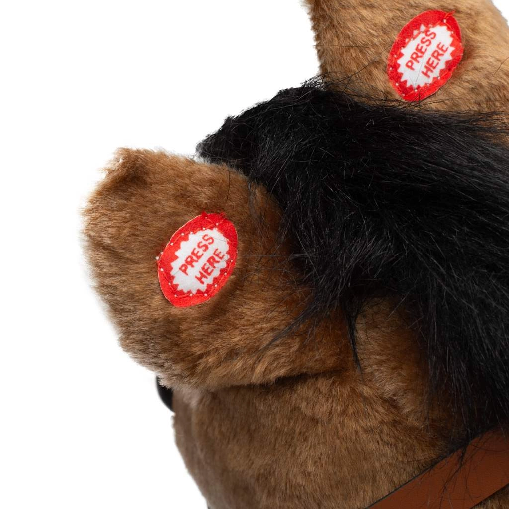 Grazie alla struttura stabile e alla possibilità di smontare le slitte, il cavallino è pratico sia per l’uso in casa sia per essere riposto. Il modulo batterie è intelligentemente nascosto in una taschina sul pancino. Il giocattolo favorisce lo sviluppo della motricità, dell’equilibrio e della fantasia.
