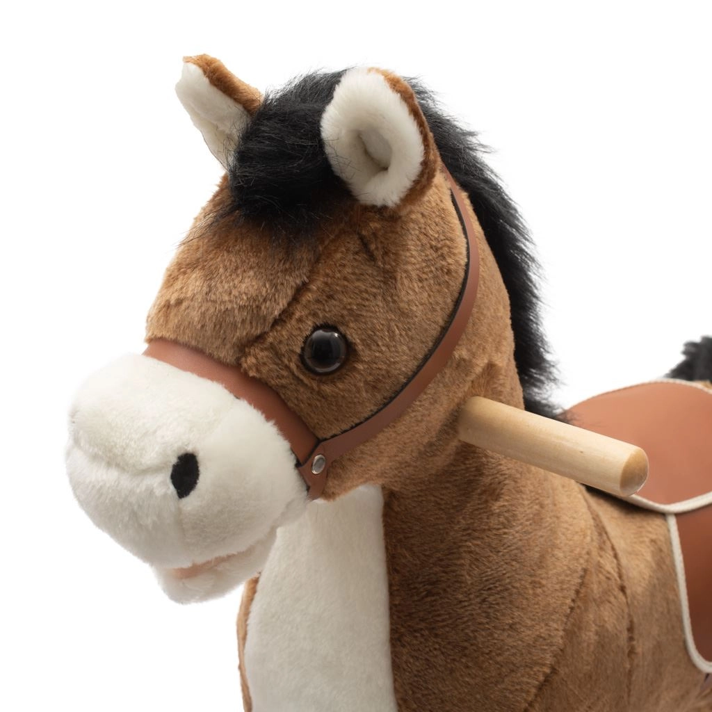 - Rivestimento in peluche, slitte a dondolo in legno, dettagli in similpelle