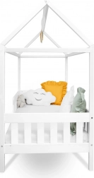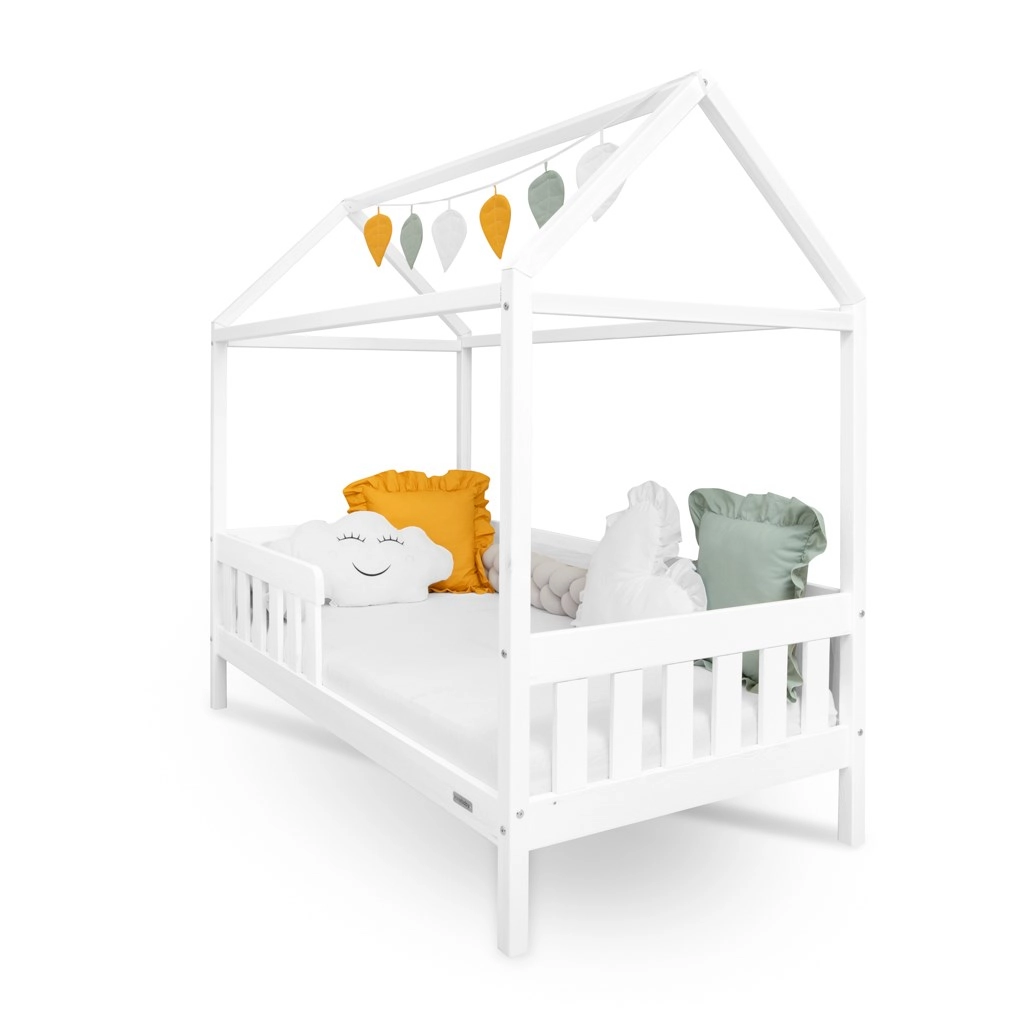 Il letto per bambini a forma di casetta NEW BABY Castello offre sicurezza, comfort e un design giocoso per il sonno quotidiano e il divertimento. Legno massello di pino, vernici a base d'acqua sicure per i bambini, barriera di protezione contro le cadute e una rete a doghe di qualità per un sostegno sano della colonna rendono questo letto una scelta eccellente per ogni cameretta.