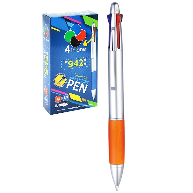 Pratica penna a sfera con quattro colori in un unico corpo per scrivere, evidenziare e organizzare gli appunti. Lunghezza 14,2 cm, tratto da 1 mm e scrittura scorrevole in 4 colori. Ideale per scuola, ufficio e viaggio, con cambio colore facile e impugnatura confortevole. Adatta ai bambini dai 3 anni.