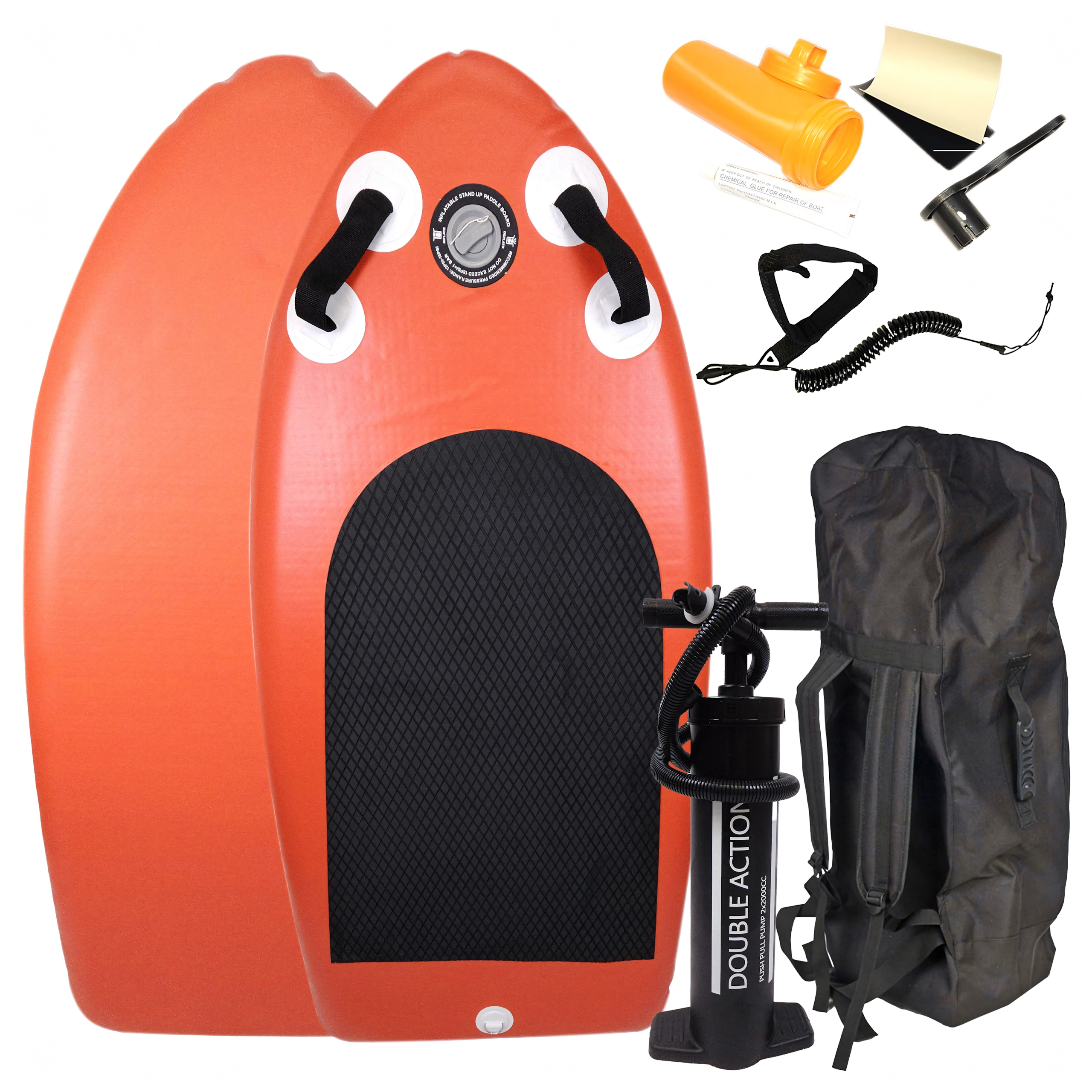 La struttura composita multistrato con PVC rinforzato e giunzioni termosaldate aumenta la resistenza e la tenuta. Nella confezione c’è tutto ciò che serve: pompa a doppia azione per un gonfiaggio veloce, leash per un fissaggio sicuro al polso e kit di riparazione per piccoli interventi sul posto.