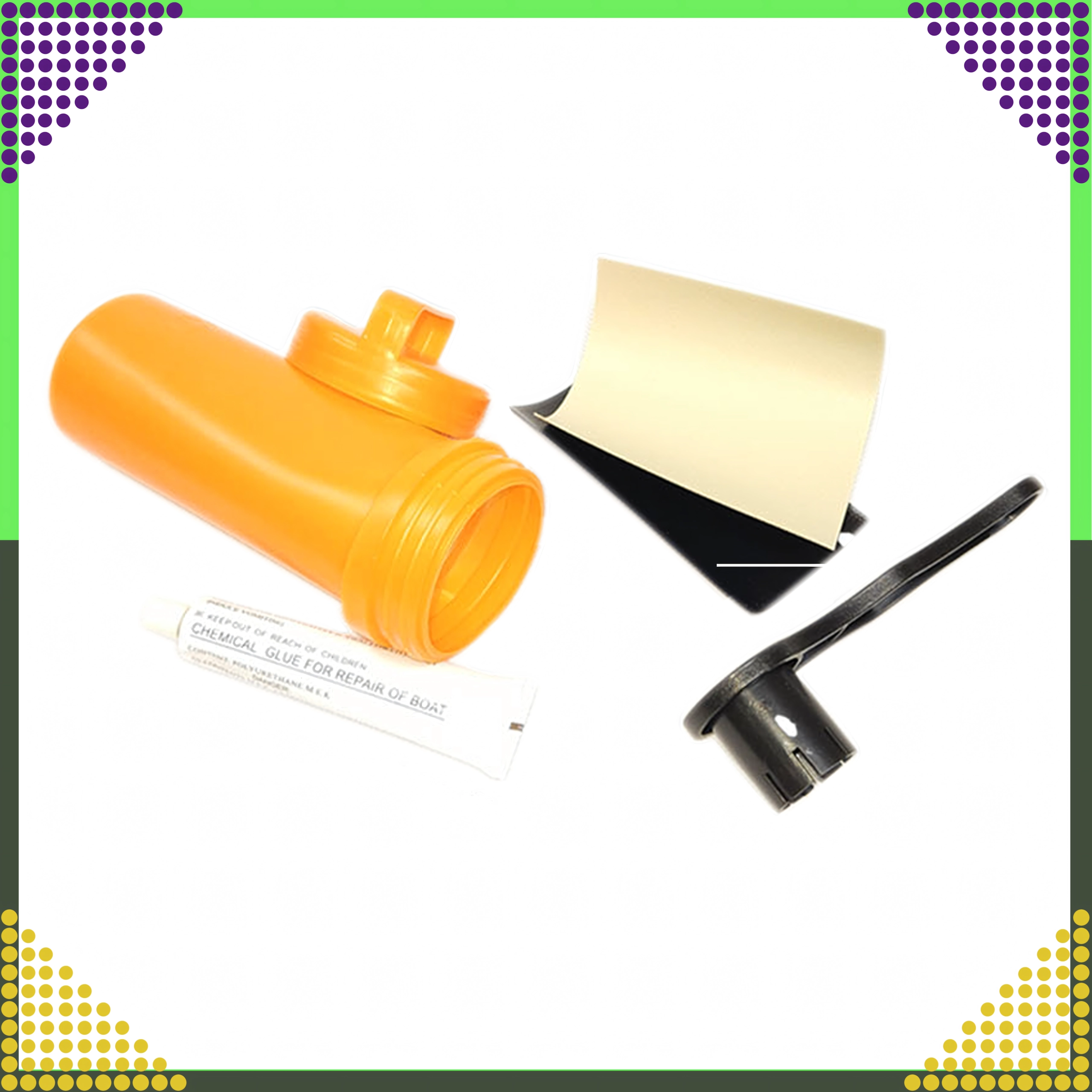 - Pompa a doppia azione, leash di sicurezza, kit di riparazione, borsa da trasporto