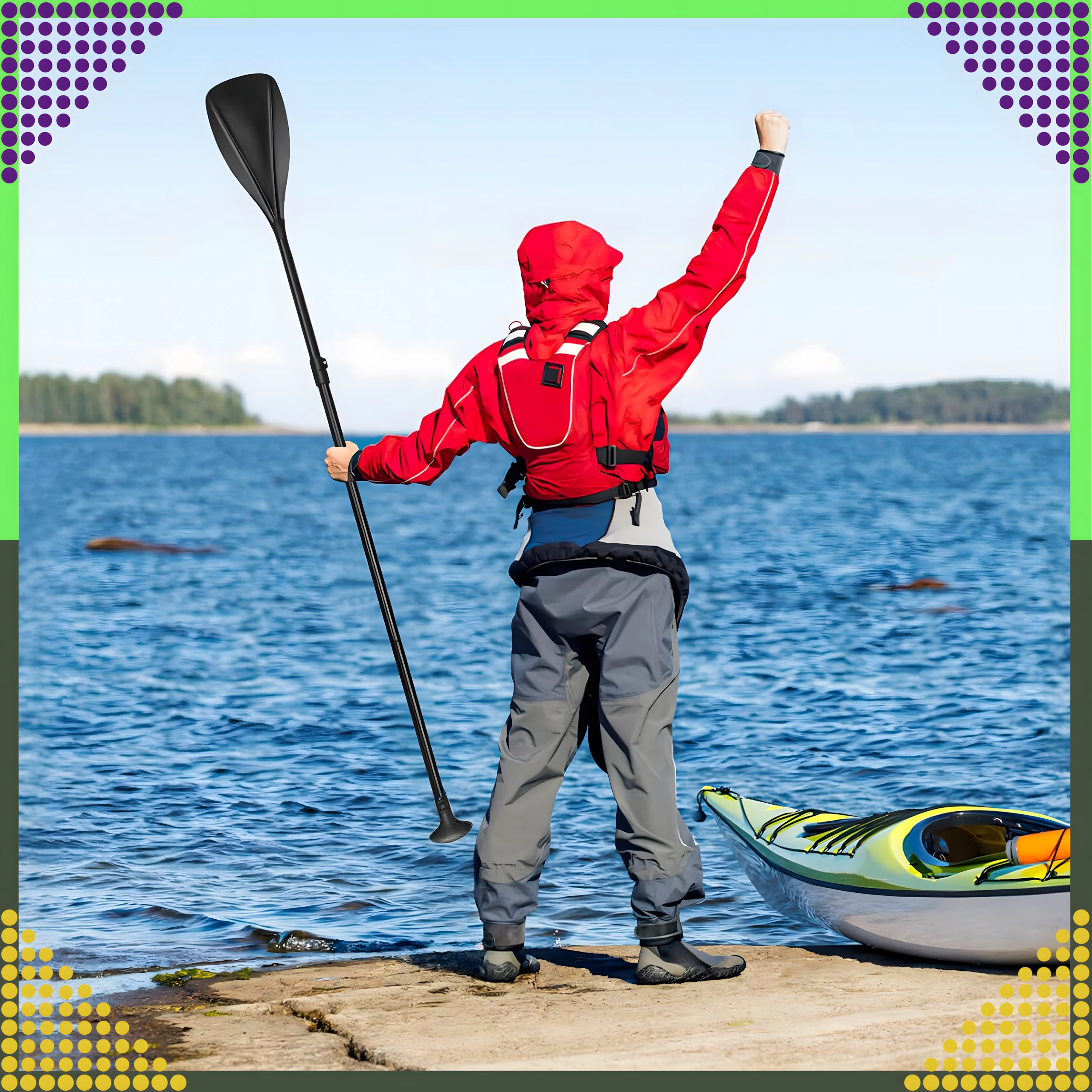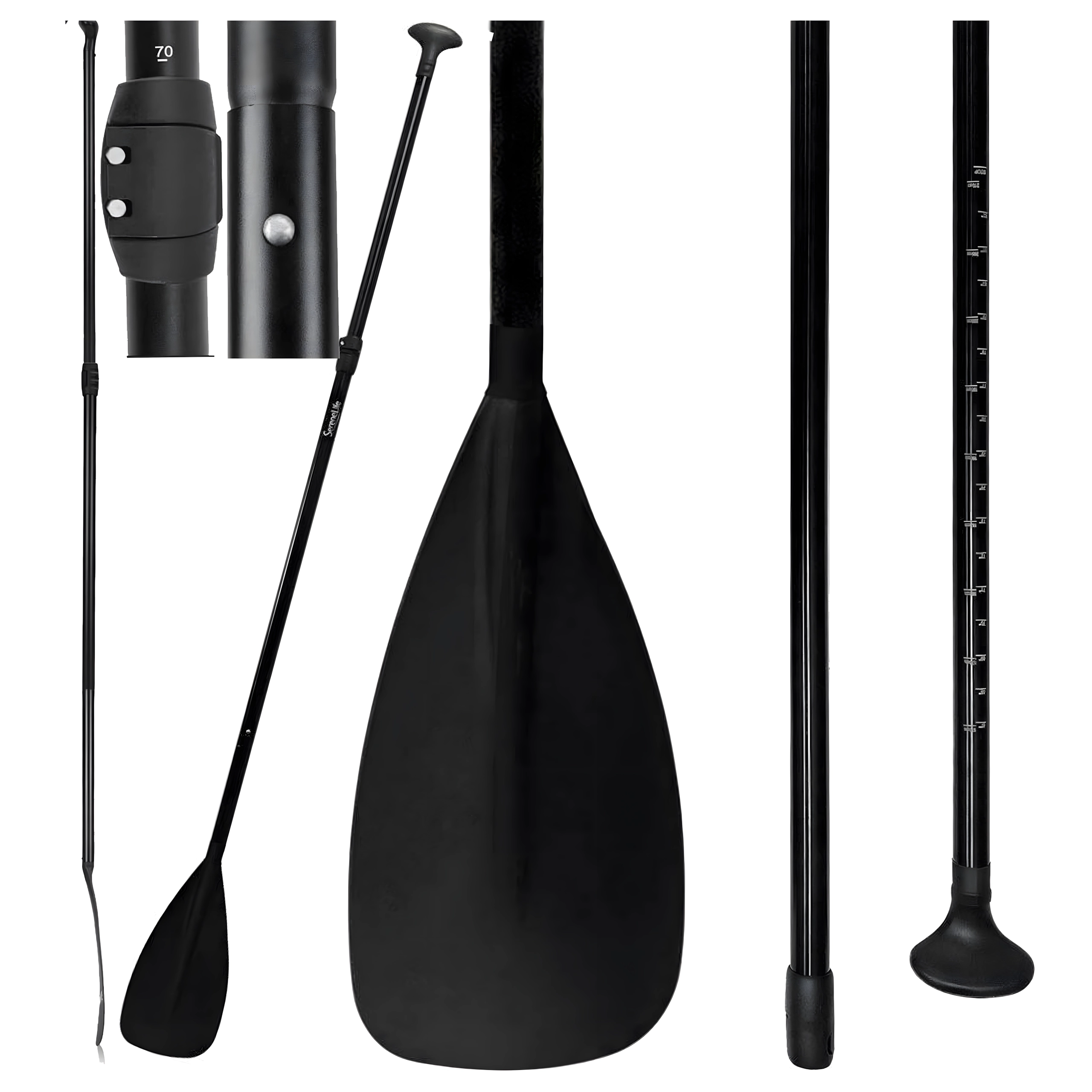 Pagaia universale in alluminio per SUP e kayak con lunghezza regolabile, struttura pieghevole in 3 parti e impugnatura a T confortevole. Materiali resistenti, regolazione rapida e facile trasporto: ideale per principianti e utenti esperti.