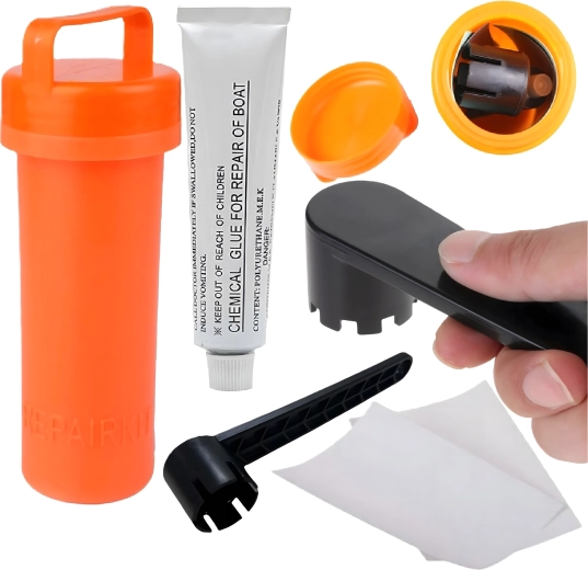 Questo kit di riparazione compatto è progettato per riparazioni rapide e di qualità di paddleboard, kayak, raft e altre imbarcazioni gonfiabili. La custodia arancione impermeabile mantiene il contenuto asciutto e al sicuro, così puoi averlo sempre a portata di mano nello zaino o a bordo. Include colla chimica con applicatore, fogli di toppa e chiave per valvola per il serraggio o la manutenzione delle valvole.