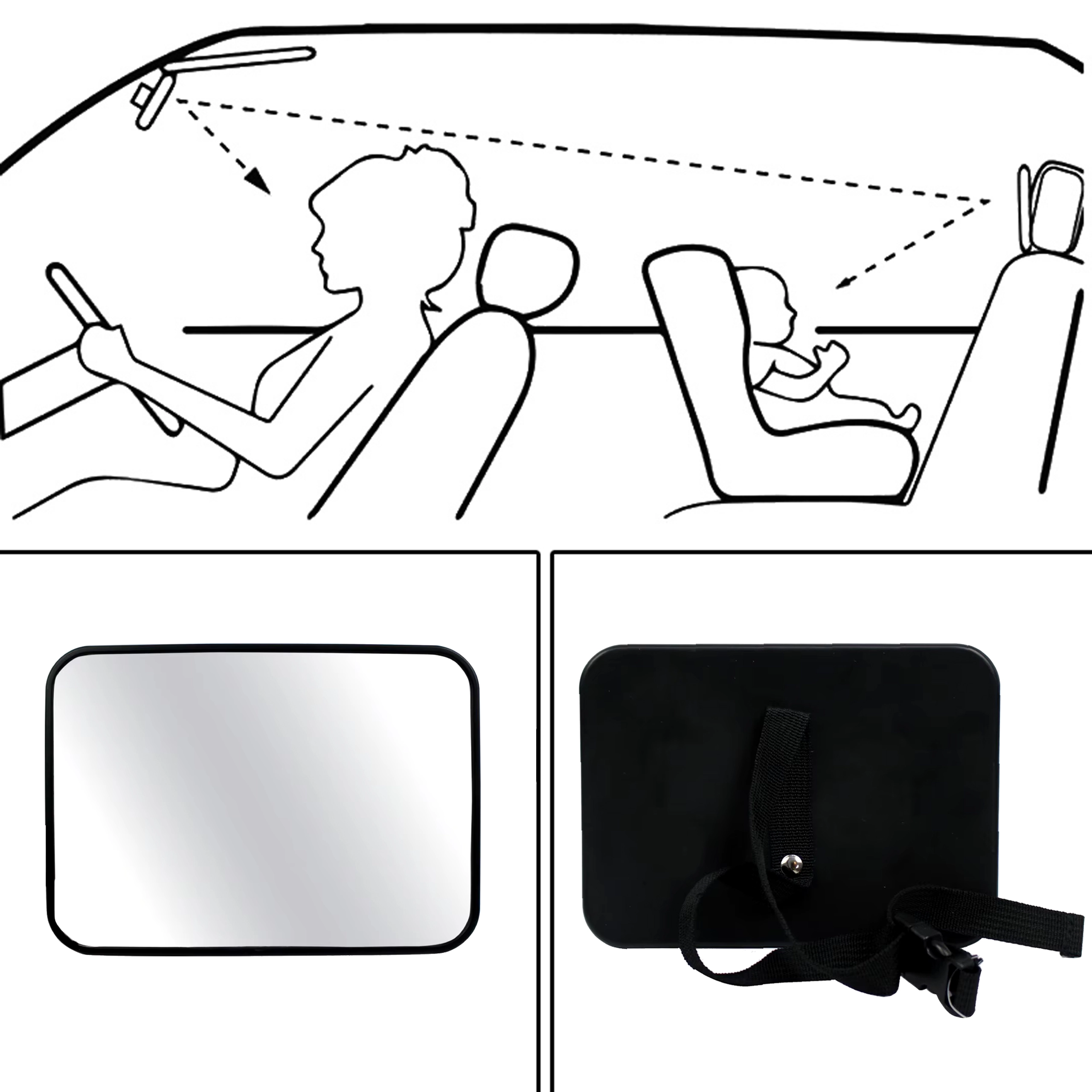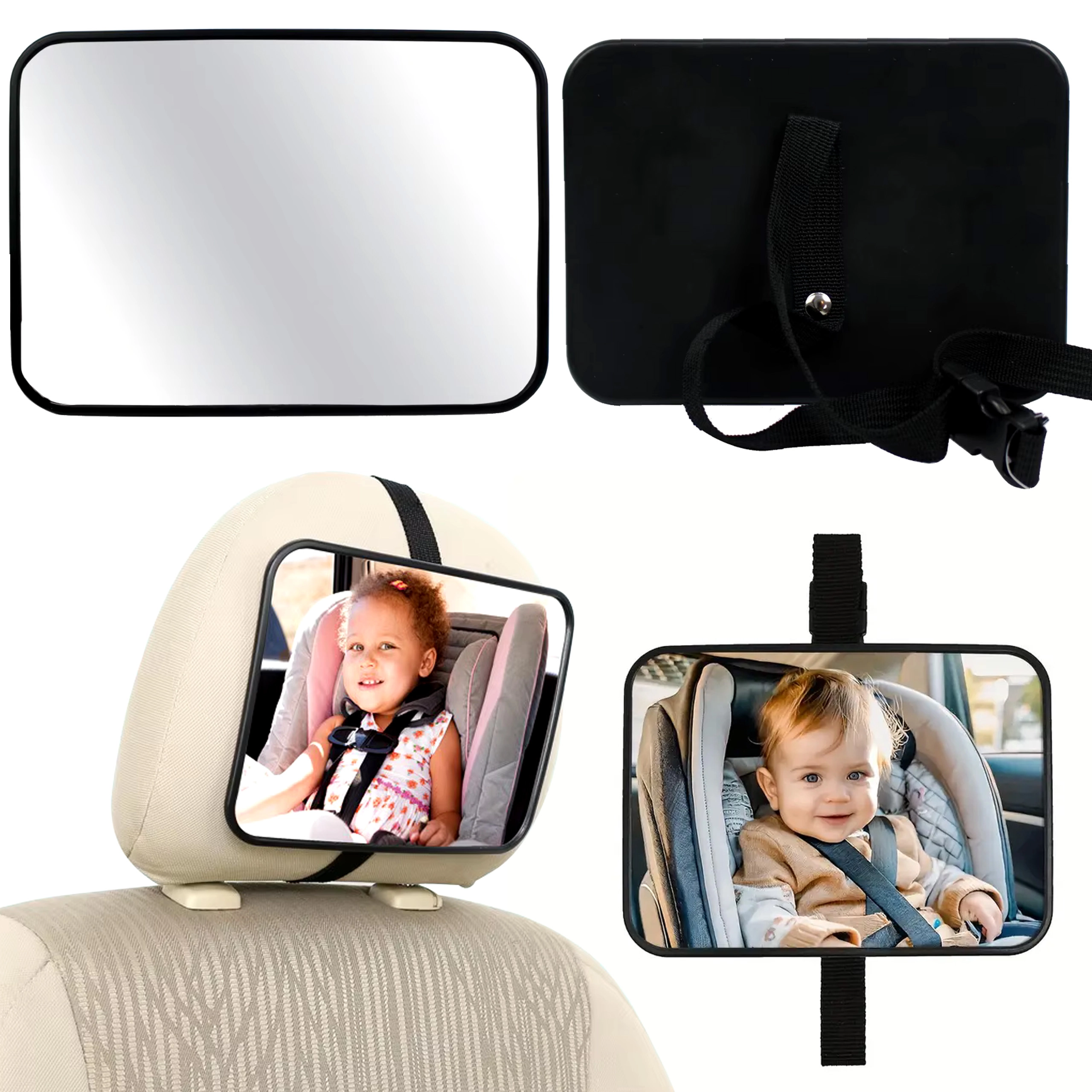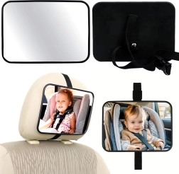 Il pratico specchietto per bambini da auto permette di tenere sempre sotto controllo il neonato nel seggiolino senza dover girare la testa. Grazie al fissaggio al poggiatesta e al ampio campo visivo rimani tranquillo e la tua guida sarà più sicura. Lo specchietto è regolabile, si monta facilmente con cinghie robuste e offre un fissaggio stabile per osservare il bambino senza interferenze.