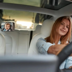 Grazie allo snodo, regoli facilmente la posizione dello specchio per avere il bambino inquadrato dallo specchietto retrovisore interno per tutta la durata del viaggio.