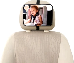 Niente più girarsi indietro durante la guida. Lo specchietto per poggiatesta offre una visuale chiara e ampia sul bambino nel seggiolino in senso contrario di marcia. Con il fissaggio universale e lo snodo regolabile imposti facilmente l’angolo ideale per avere sempre il piccolo passeggero sotto controllo.