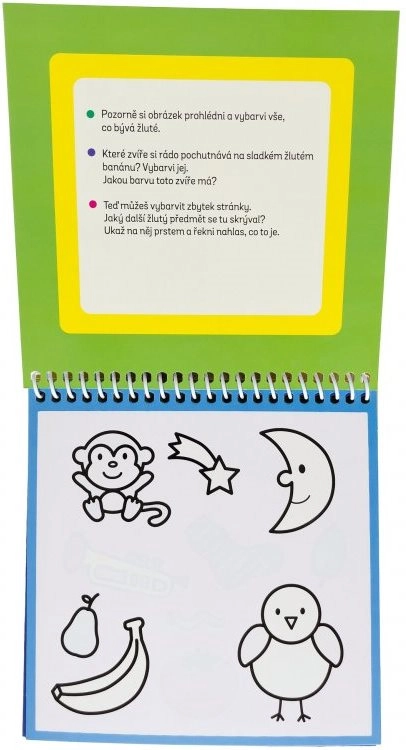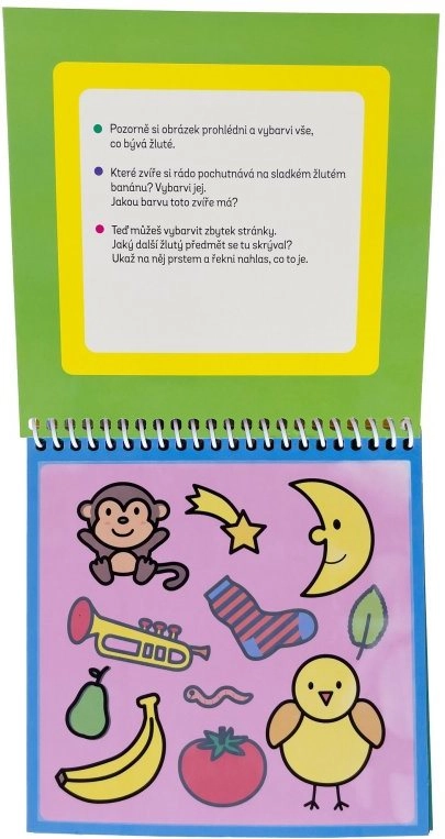 Questo album da colorare ad acqua riutilizzabile è ideale per i bambini in età prescolare. In modo ludico, i piccoli esercitano il riconoscimento delle forme, la denominazione dei colori e la motricità fine. In ogni pagina li attendono semplici compiti e immagini nascoste, che appaiono passando il pennarello ad acqua.