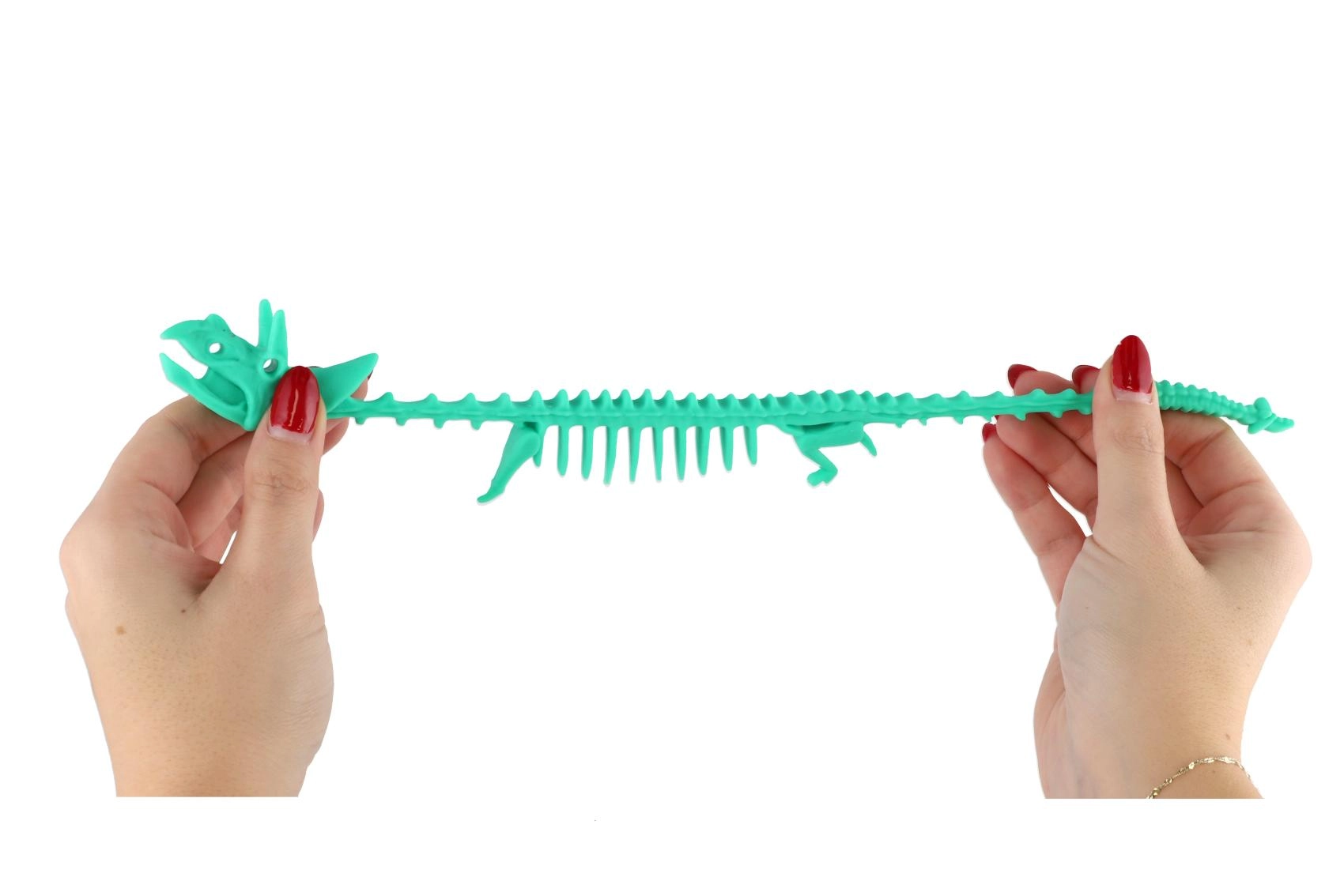 Questo scheletro di dinosauro allungabile è un perfetto strumento antistress per momenti quotidiani di relax. Il silicone morbido ed elastico consente di schiacciare, allungare e torcere il giocattolo senza timore di danneggiarlo, aiutando a liberare la tensione e a migliorare la concentrazione.