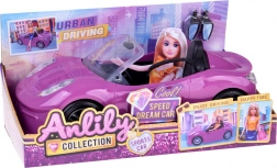 L'elegante cabrio in un raffinato viola, perfetto per le bambine, è l'accessorio ideale per il mondo di gioco delle bambole. Grazie al top aperto, sistemare le bambole è facile e guidare sotto il sole è ancora più divertente. L'interno colpisce con volante girevole, adesivi degli strumenti del cruscotto e cinture regolabili – tutto per un'esperienza ancora più realistica.