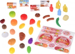 Il set include frutta, verdura, prodotti da forno, salumi, bevande e piccole scatoline. Forme e colori realistici favoriscono l’apprendimento e l’immaginazione.