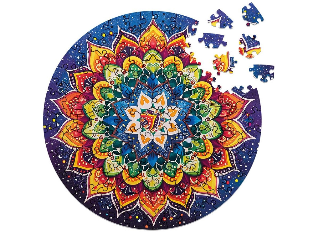 Scopri il potere del relax con i puzzle in legno ispirati al motivo della mandala. Il set include 100 pezzi irregolari, di cui 5 con forme speciali, che creano un disegno armonico e ipnotico. Realizzato in legno di alta qualità per durata e incastri precisi – ideale per rilassamento, concentrazione e meditazione.