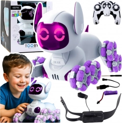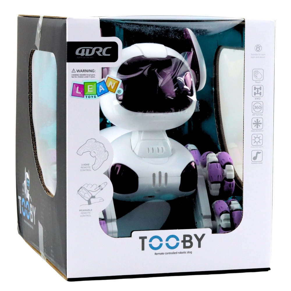 Il cane robot TOOBY conquista con design futuristico, struttura solida e controllo intuitivo. Le ruote omnidirezionali e la trazione integrale (4WD) garantiscono stabilità anche nelle manovre rapide. I bambini ameranno i colorati effetti LED, la musica e le reazioni al tocco, che rendono il gioco più realistico.