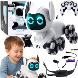 Il cane robotico TOOBY unisce tecnologia, movimento e gioco interattivo. Le ruote omnidirezionali e la trazione integrale (4WD) assicurano un’ottima aderenza e manovre precise, incluse rotazioni a 360°, marcia avanti/indietro e sterzate fluide. Gli occhi a LED e gli effetti luminosi, insieme ai suoni dinamici, aggiungono atmosfera a ogni corsa.