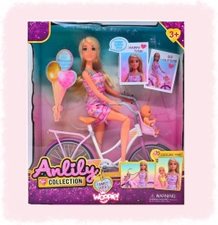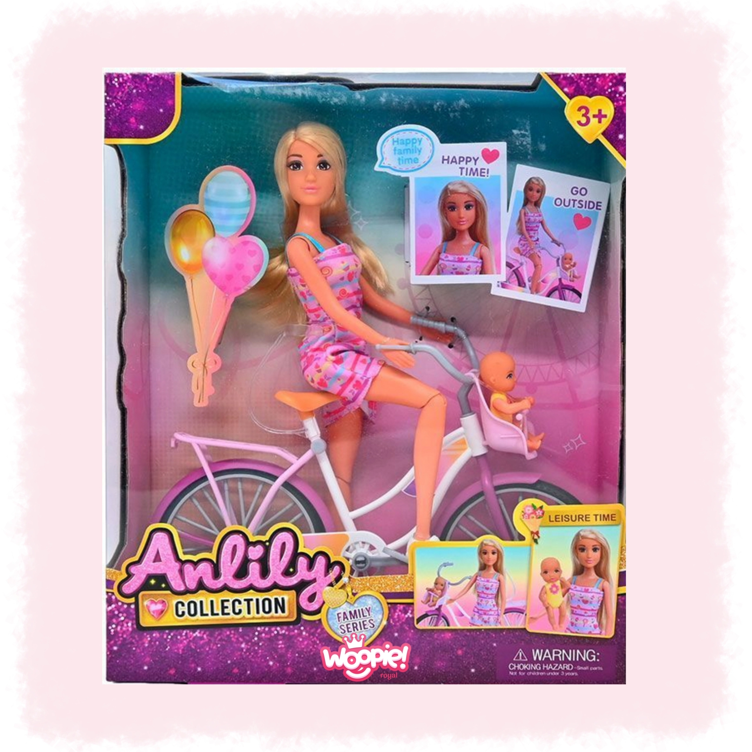 Woopie Bambola Lily ciclista con bebè e seggiolino per bici