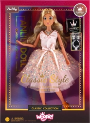 L'elegante bambola Lily del marchio Woopie farà felice ogni piccola principessa. È alta 30 cm, ha lunghi capelli biondi da pettinare e un abito da ballo rosa con brillantini. Inclusi accessori alla moda – collana, orecchini e scarpine eleganti. Adatta ai bambini dai 3 anni.