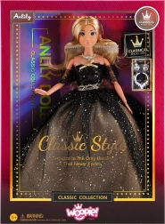 L’elegante bambola Lily del marchio Woopie incanta con un abito da sera nero‑dorato con paillettes, lunghi e folti capelli biondi per lo styling e arti snodati. Scelta ideale per il gioco creativo, lo sviluppo della motricità e delle abilità sociali dei bambini dai 3 anni in su.