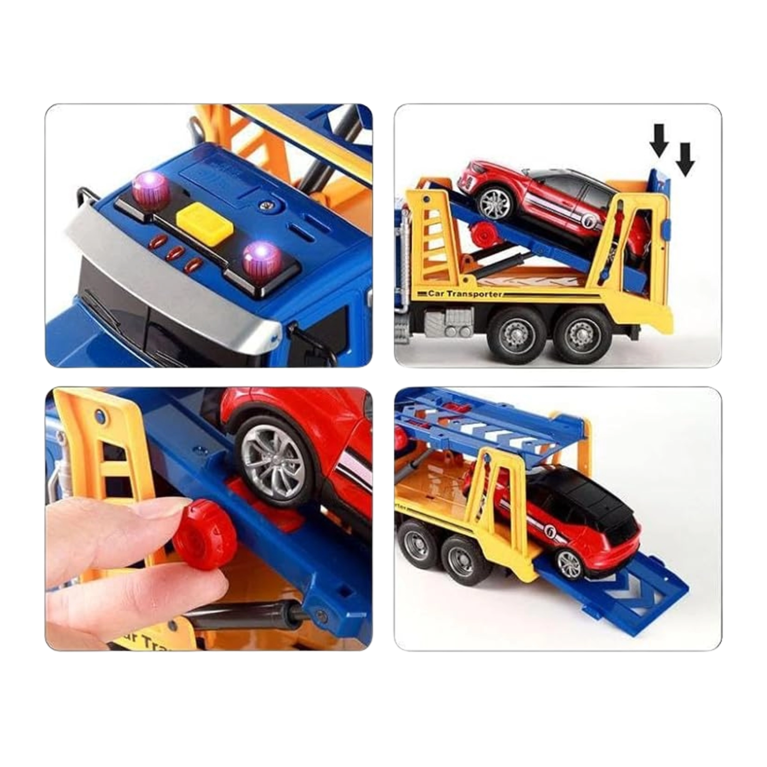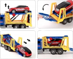 Il carro attrezzi WOOPIE in colore blu con piattaforma giallo‑blu entusiasmerà ogni bambino che ama i veicoli grandi. I pulsanti sulla cabina attivano effetti luminosi e sonori per un gioco ancora più autentico. La piattaforma mobile consente un facile abbassamento e carico della macchinina inclusa, così i bambini possono creare le proprie storie di trasporto.