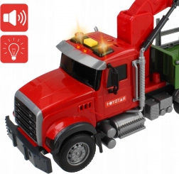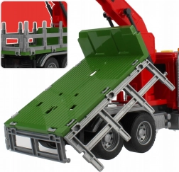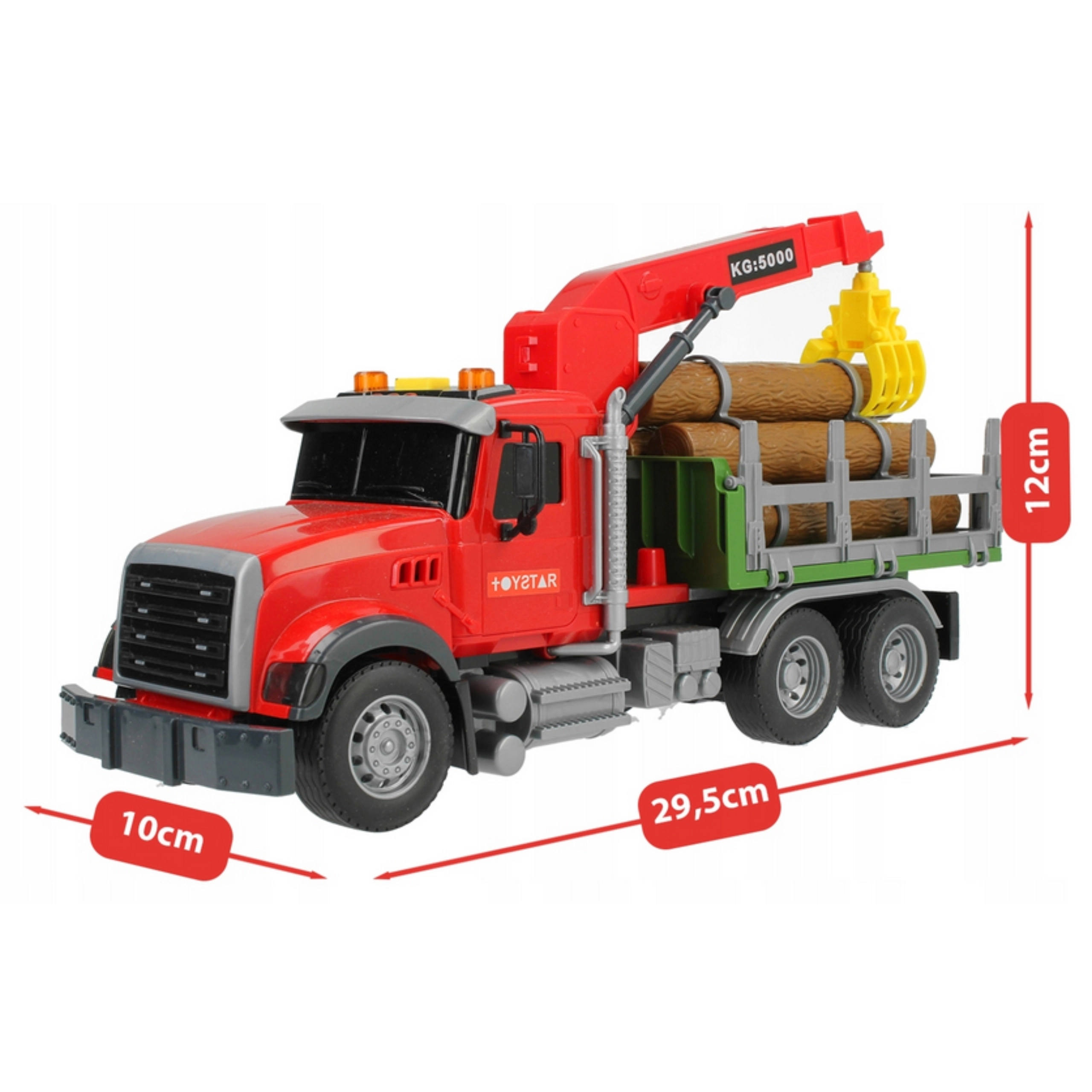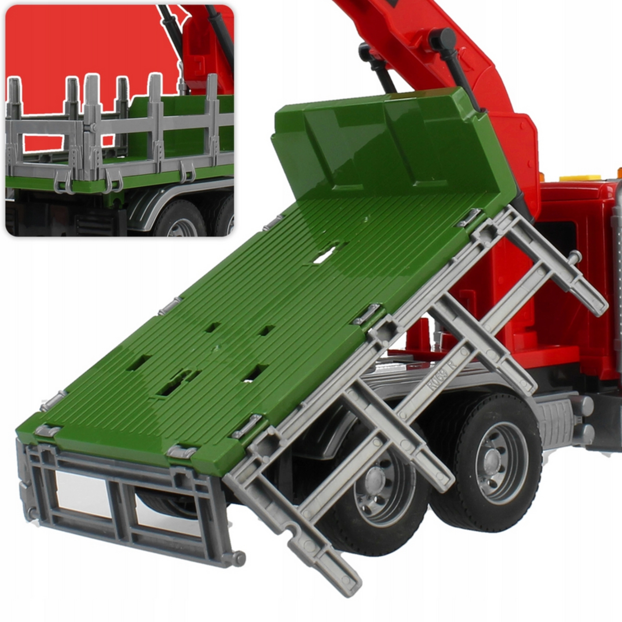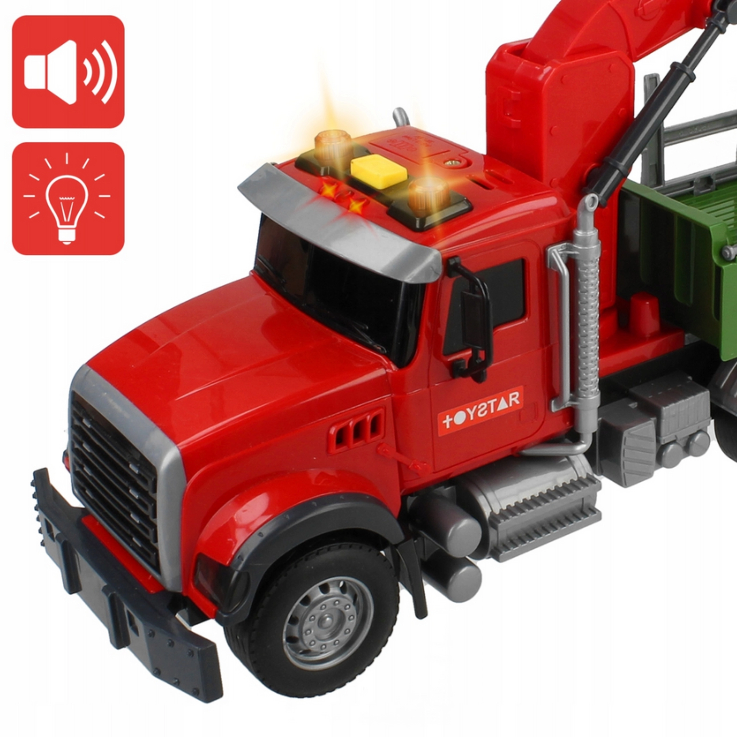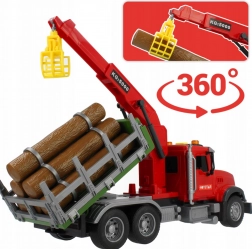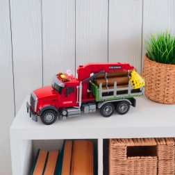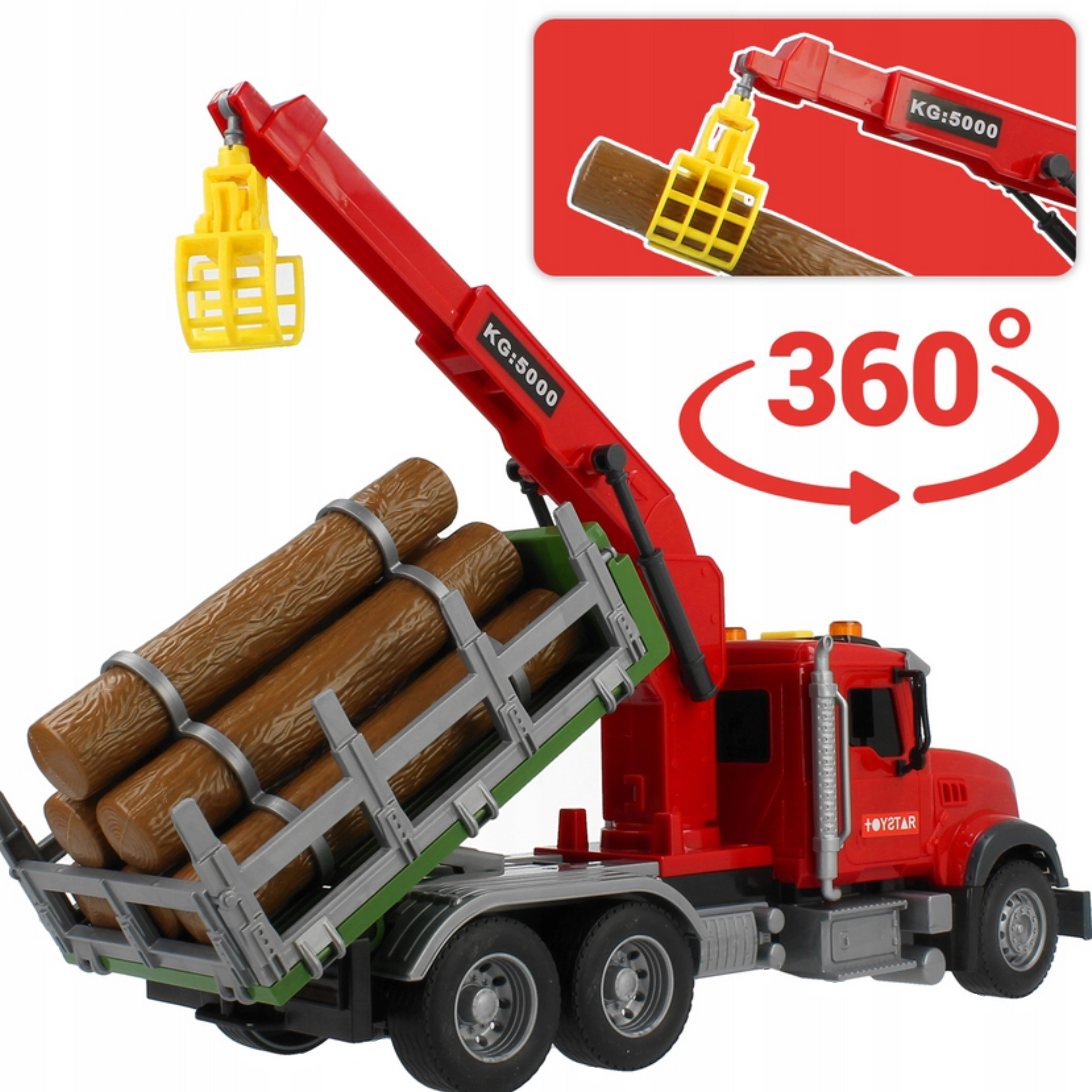 Scopri il mondo dei mezzi pesanti con il camion WOOPIE in scala 1:14. Il bambino può controllare manualmente la gru girevole con pinza meccanica, spostare i tronchi inclusi e simulare un vero lavoro forestale. Il gioco è arricchito da suoni realistici di motore, clacson e gru e da brillanti effetti LED.