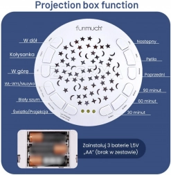 - Proiettore luminoso — delicata proiezione di stelle e lune per un rilassamento visivo
