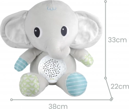 L’elefante di peluche WOOPIE crea nella cameretta un’atmosfera magica e rilassante. La delicata proiezione di stelline e lune, insieme a melodie e rumore bianco, aiuta i bambini a calmarsi e ad addormentarsi in sicurezza. Il controllo è intuitivo, non mancano la regolazione del volume e lo spegnimento automatico dopo 30, 60 o 90 minuti.