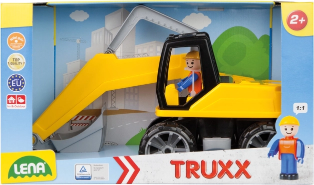 L’escavatore in plastica LENA TRUXX offre ai bambini un gioco di costruzione realistico. Grazie alla struttura solida e alla plastica resistente, è adatto sia per l’interno sia per l’esterno. I comandi sono pensati per le mani dei più piccoli: i bambini alzano e abbassano intuitivamente il braccio e la benna mobili, fanno ruotare la sovrastruttura ed esplorano tutte le possibilità di gioco.